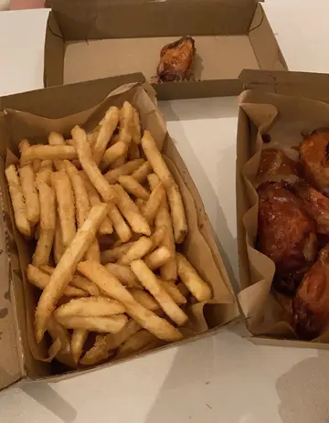 Craving for food at midnight.. so I just randomly ordered sth on app I like how their set let you pick many flavours…. 8 pieces in total and I get to try all 4 flavours. The skin is still crispy even though the food was ready half an hour ago. I like the two flavours with honey more. The spicy one has weird tasting sauce which does not really match with the chicken. Overall the chicken wings are fine.Fries are SO GOOD. Still super crispy. Must try. Doesn’t even need tomato sauce…查看更多