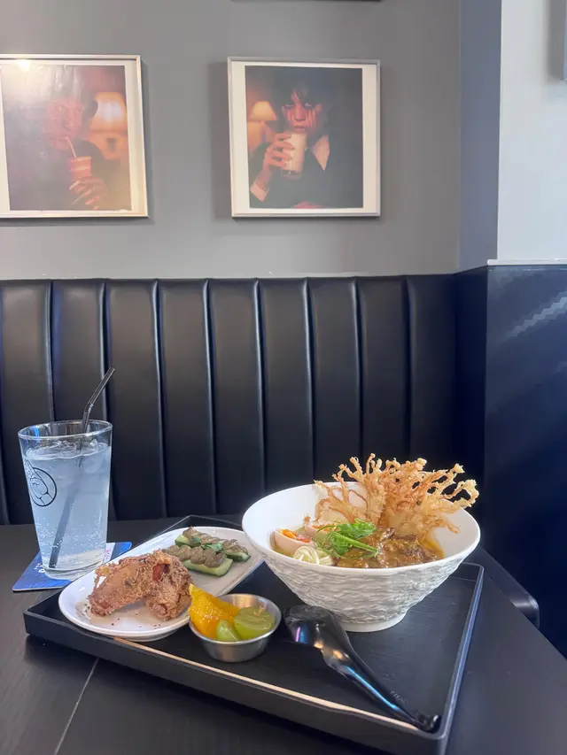 今天來到中上環的壁畫打打卡,又到「元創坊」趴趴走,看看文青手作,偶爾路過這家小店,看到鋪面的海報「雞白湯沙嗲牛肉麵」