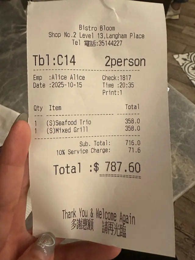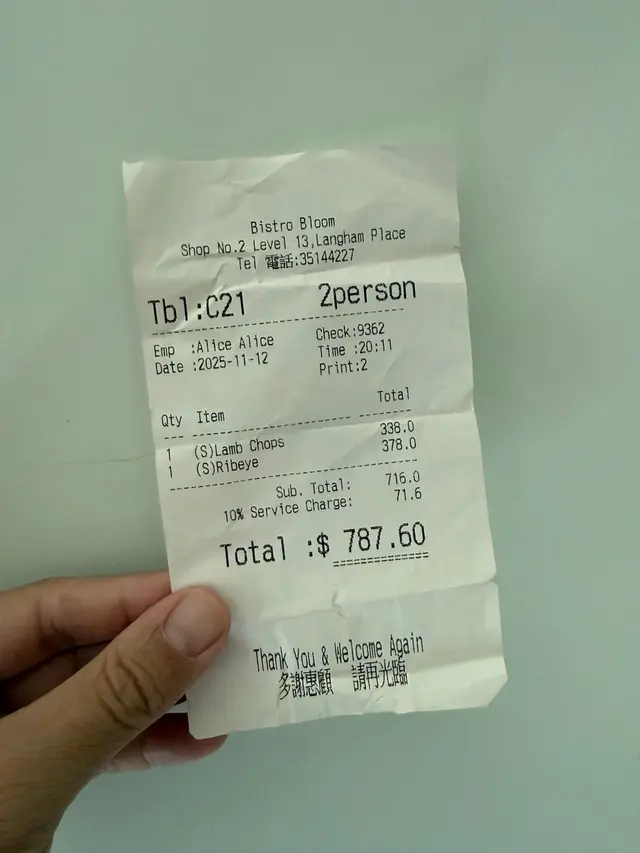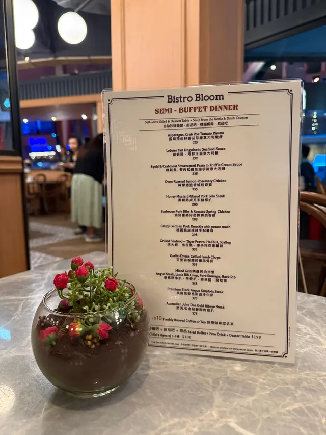 Bistro Bloom (旺角) 網址: https://s.openrice.com/QrbS0hjW700 地址: 香港旺角亞皆老街8號朗豪坊13樓2號舖 電話: +852 35144227