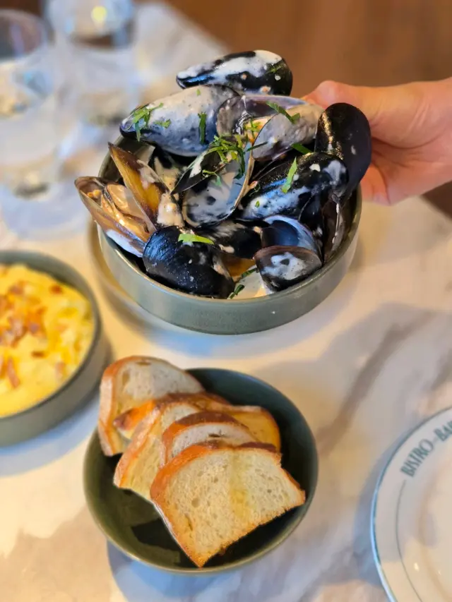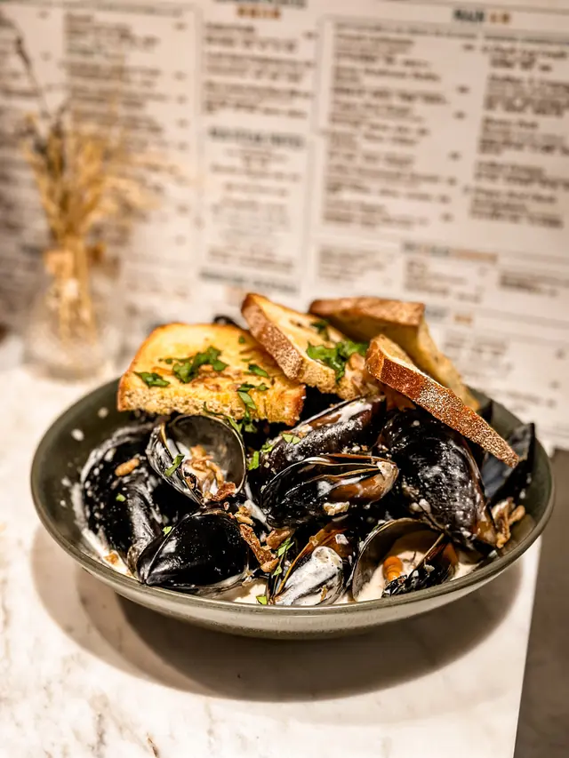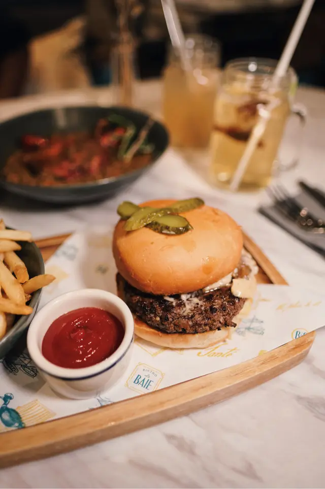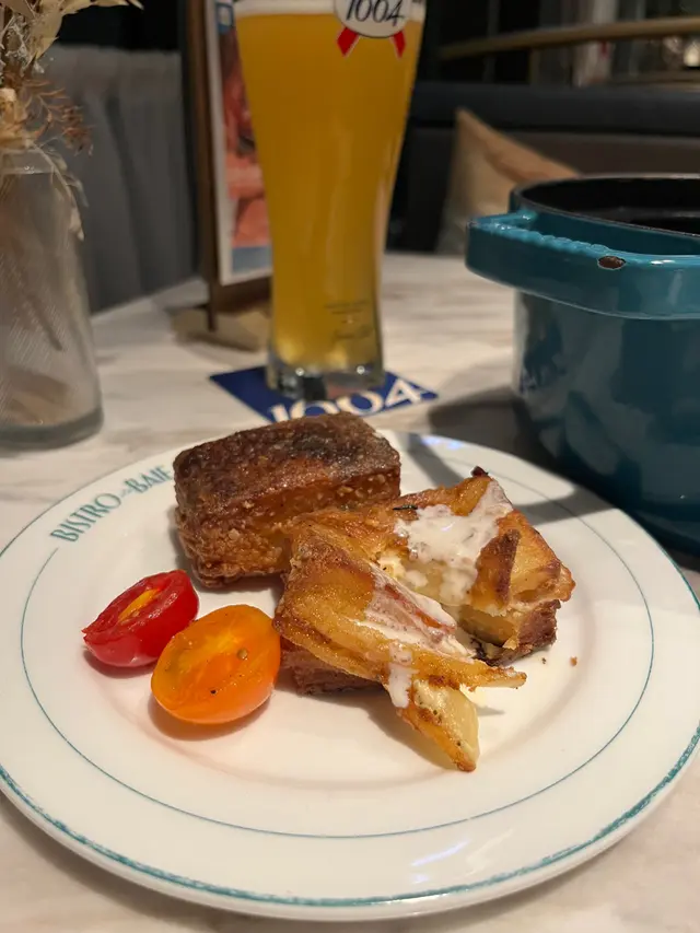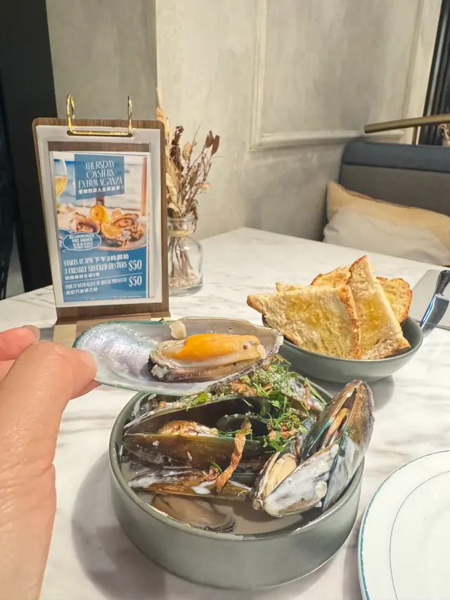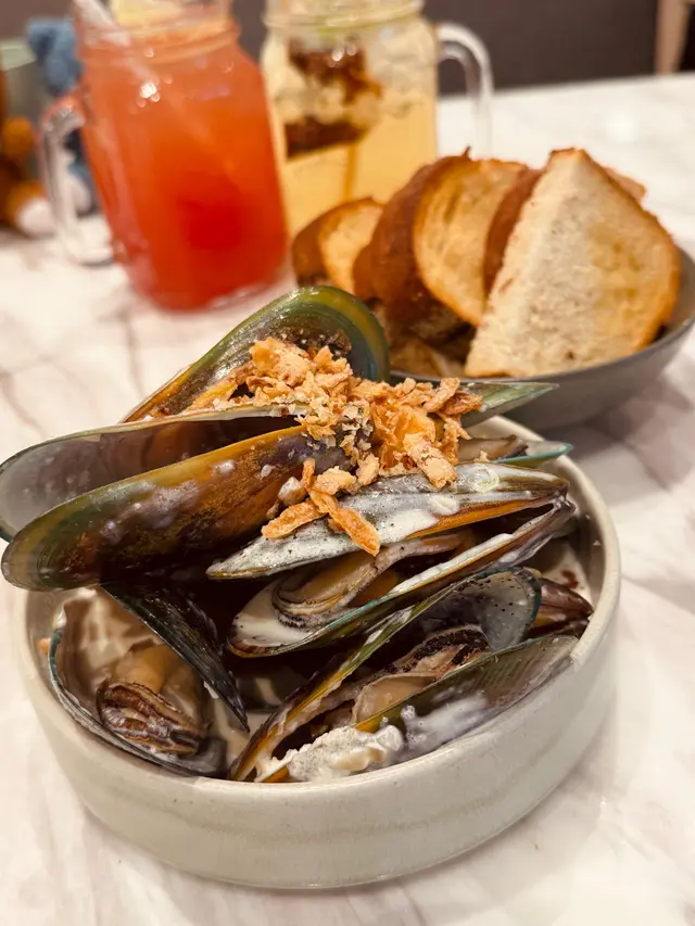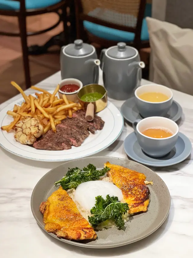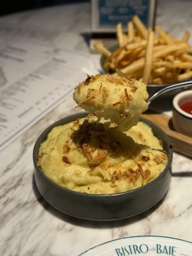上次約了住澳南的一位朋友,吃過在澳南開的一間東南亞餐廳。今天晚上,到他輪席做東,他說澳南海濱旁,有一法國菜餐廳,可以一試,就應了他的約。Bistro La Baie,開在澳南海濱,面對著澳藍大橋。餐廳分有室内和户外座位,賞橋景或在室内聽著音樂進餐,就悉隨專便了。餐廳採用歐陸裝修,色調優雅,顏色與海邊的色調協調,十分之舒適。一坐下,就想到法國名湯 - 洋蔥湯,心想在這裡沒可能沒有。再看餐牌果然是有,我們異口同聲都說,法式洋蔥湯非常難處理得好,就首先點了,看看這餐廳的功力,去到那個階層。French Onion Soup 法式洋蔥湯,這餐廳果然當得上法國菜餐廳,這湯真的有水準處理得很好。洋蔥是靈魂之外,還加了口感細滑的瑞士格魯耶爾芝士Gruyere Cheese 配在一片多士上再焗,與傳統的酥皮,是更上一層樓的滋味。Charred Eggplant Dip 烤茄子沾醬很特別,是塗在酸種麵包上吃的一道素菜。烤過的茄子打碎得幼滑,感覺沒茄子的口感,帶小小的酸味更加開胃,加了初榨橄欖油、红石榴和香草,顯得這道素菜,更鮮甜幼滑。主菜點了Rib Eye 肉眼牛扒,配菜是薯條和烤蒜。Medium 這餐廳完全掌握得到,肉身粉嫩没出血水就是成功。而薯條份量也充足,將那烤過的蒜頭,塗在肉眼扒上吃更見好味。French Carbonara 法式卡邦尼扁意粉。傳統的卡邦尼意粉比較乾身,忌廉之外還有蛋黃成分。但這餐廳的法式卡邦尼扁意粉,卻用上整只半生熟的流心蛋,伴起來就顯得多汁 creamy 和掛汁了。煙肉再配搭忌廉芝士汁,令這法式意粉添上滑溜芝士香味濃烈,個人認為比意式卡邦尼意粉好吃。甜品今晚來個法式橙酒可麗餅 Crepes Suzette,這是法國出名的甜品,軟綿綿的可麗餅加金寶脆脆,浸在橙酒裡,不太甜而橙酒味香濃,加點鮮橙汁的甜味,令整碟甜品更見出色。飲品點了Elderflower Apple 是一杯由西洋接骨木花、蘋果汁、肉桂茶和梳打水混合的無酒精飲品。Cucumber Gimlet 卻是這餐廳招牌的雞尾酒,由青檸汁加氈酒組合而成。完美的一餐法國菜,這餐廳其實還有很多款菜式,例如法式田螺法式田雞腿等,都相當吸引下次來一定要試試。…查看更多
