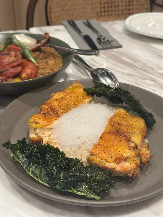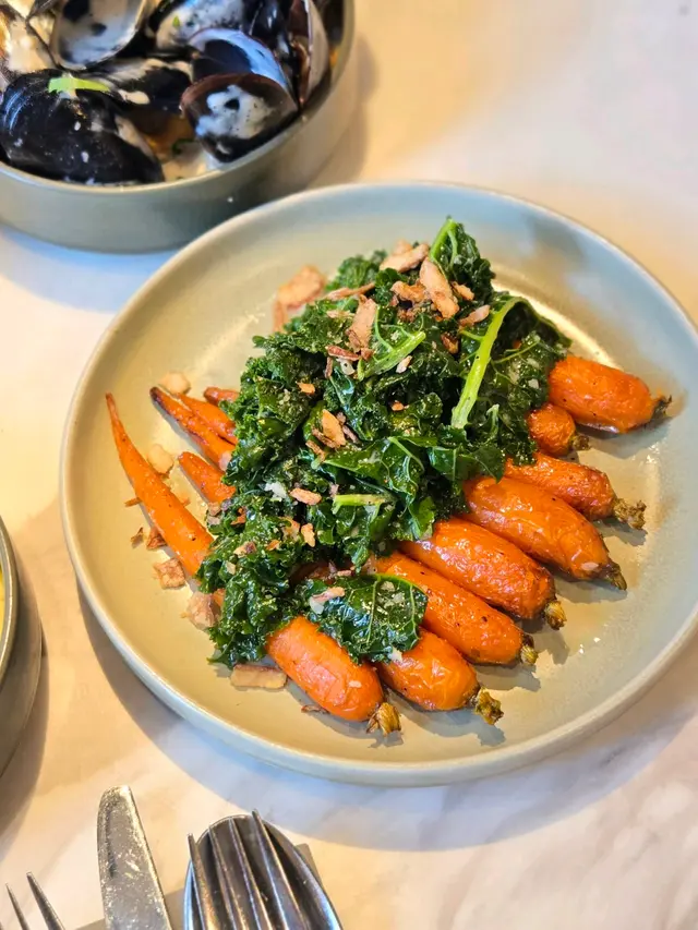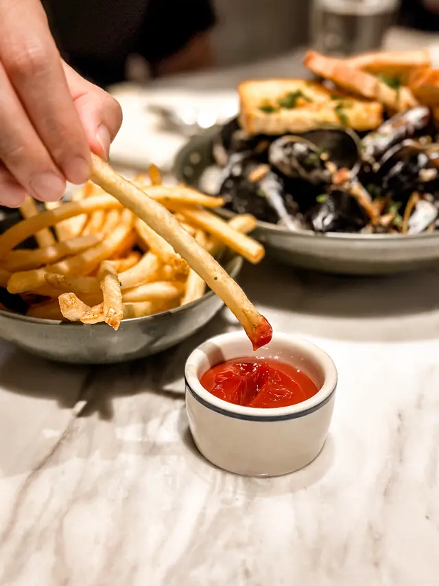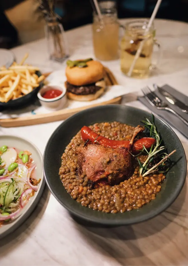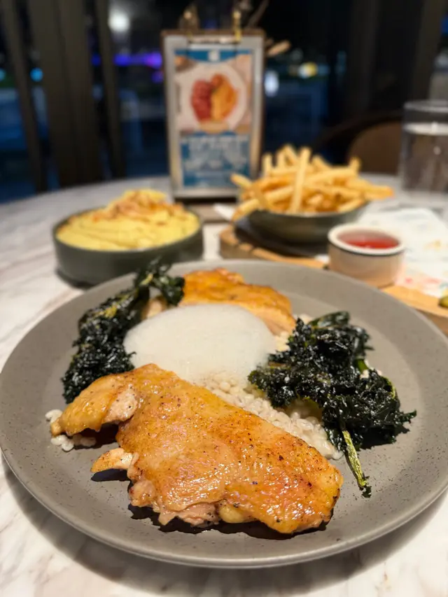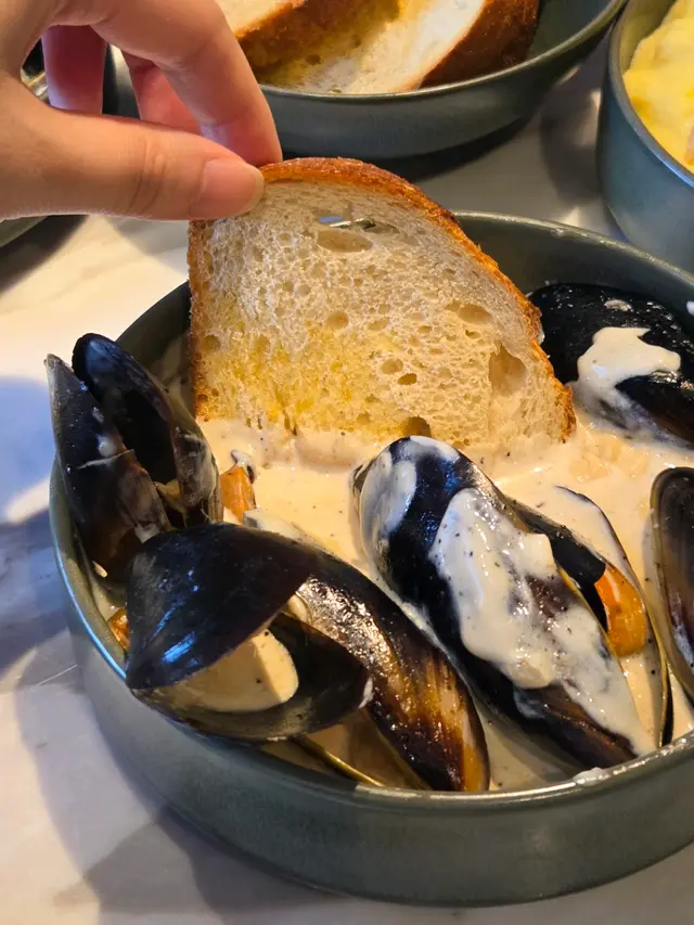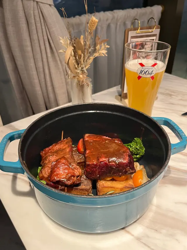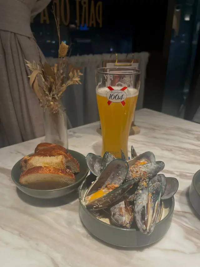 上次約了住澳南的一位朋友,吃過在澳南開的一間東南亞餐廳。今天晚上,到他輪席做東,他說澳南海濱旁,有一法國菜餐廳,可以一試,就應了他的約。Bistro La Baie,開在澳南海濱,面對著澳藍大橋。餐廳分有室内和户外座位,賞橋景或在室内聽著音樂進餐,就悉隨專便了。餐廳採用歐陸裝修,色調優雅,顏色與海邊的色調協調,十分之舒適。一坐下,就想到法國名湯 - 洋蔥湯,心想在這裡沒可能沒有。再看餐牌果然是有,我們異口同聲都說,法式洋蔥湯非常難處理得好,就首先點了,看看這餐廳的功力,去到那個階層。French Onion Soup 法式洋蔥湯,這餐廳果然當得上法國菜餐廳,這湯真的有水準處理得很好。洋蔥是靈魂之外,還加了口感細滑的瑞士格魯耶爾芝士Gruyere Cheese 配在一片多士上再焗,與傳統的酥皮,是更上一層樓的滋味。Charred Eggplant Dip 烤茄子沾醬很特別,是塗在酸種麵包上吃的一道素菜。烤過的茄子打碎得幼滑,感覺沒茄子的口感,帶小小的酸味更加開胃,加了初榨橄欖油、红石榴和香草,顯得這道素菜,更鮮甜幼滑。主菜點了Rib Eye 肉眼牛扒,配菜是薯條和烤蒜。Medium 這餐廳完全掌握得到,肉身粉嫩没出血水就是成功。而薯條份量也充足,將那烤過的蒜頭,塗在肉眼扒上吃更見好味。French Carbonara 法式卡邦尼扁意粉。傳統的卡邦尼意粉比較乾身,忌廉之外還有蛋黃成分。但這餐廳的法式卡邦尼扁意粉,卻用上整只半生熟的流心蛋,伴起來就顯得多汁 creamy 和掛汁了。煙肉再配搭忌廉芝士汁,令這法式意粉添上滑溜芝士香味濃烈,個人認為比意式卡邦尼意粉好吃。甜品今晚來個法式橙酒可麗餅 Crepes Suzette,這是法國出名的甜品,軟綿綿的可麗餅加金寶脆脆,浸在橙酒裡,不太甜而橙酒味香濃,加點鮮橙汁的甜味,令整碟甜品更見出色。飲品點了Elderflower Apple 是一杯由西洋接骨木花、蘋果汁、肉桂茶和梳打水混合的無酒精飲品。Cucumber Gimlet 卻是這餐廳招牌的雞尾酒,由青檸汁加氈酒組合而成。完美的一餐法國菜,這餐廳其實還有很多款菜式,例如法式田螺法式田雞腿等,都相當吸引下次來一定要試試。…查看更多
