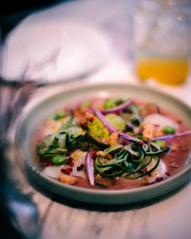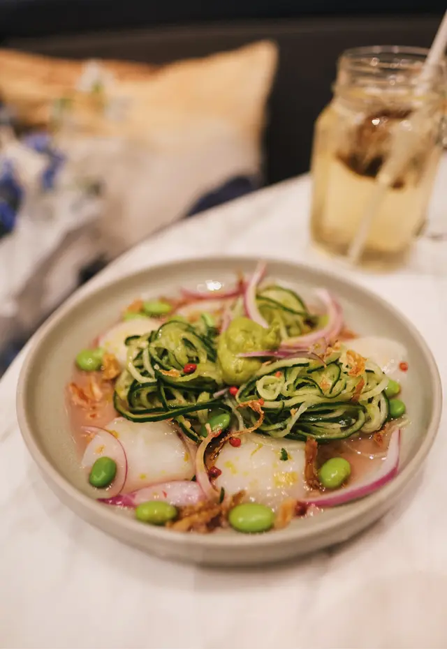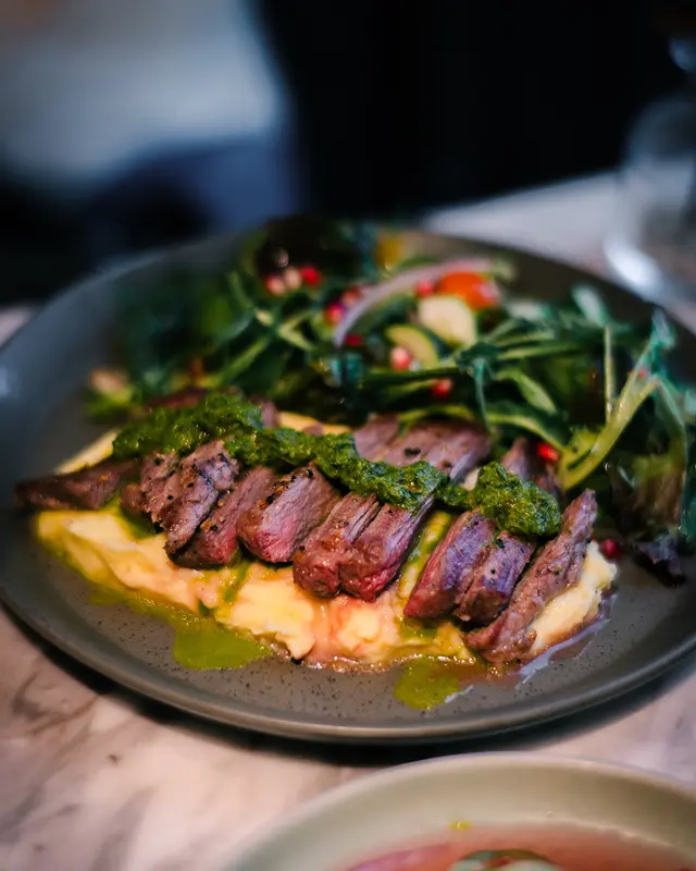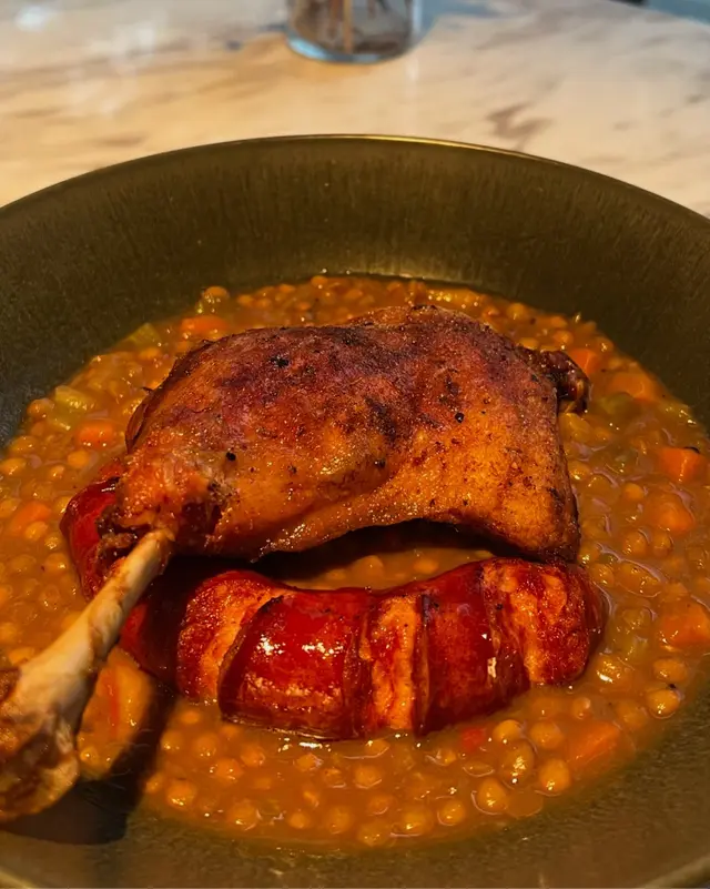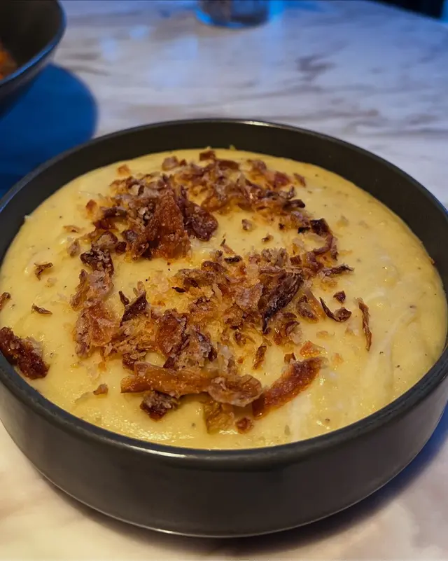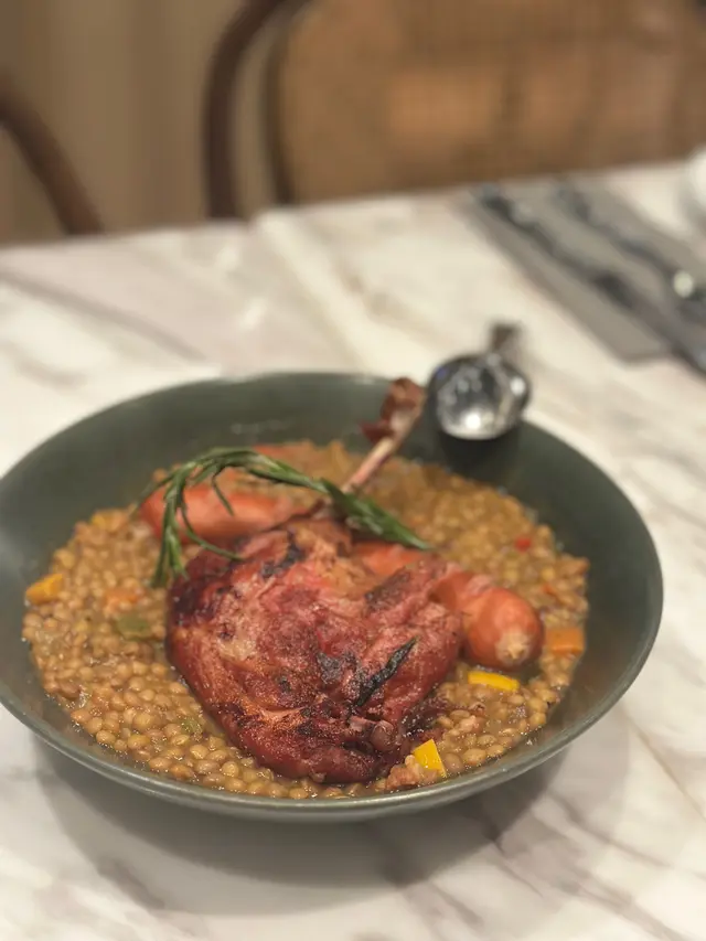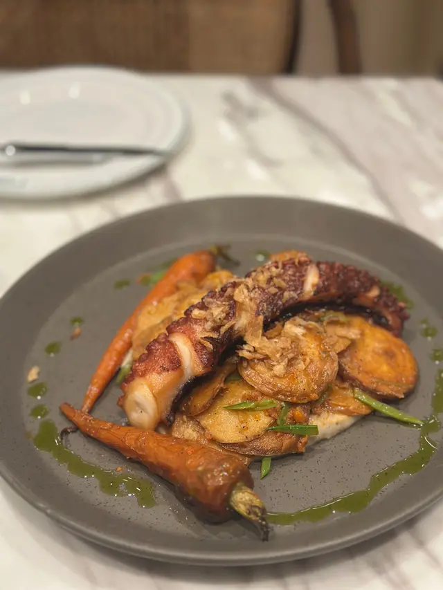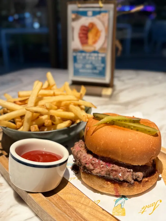 上次約了住澳南的一位朋友,吃過在澳南開的一間東南亞餐廳。今天晚上,到他輪席做東,他說澳南海濱旁,有一法國菜餐廳,可以一試,就應了他的約。Bistro La Baie,開在澳南海濱,面對著澳藍大橋。餐廳分有室内和户外座位,賞橋景或在室内聽著音樂進餐,就悉隨專便了。餐廳採用歐陸裝修,色調優雅,顏色與海邊的色調協調,十分之舒適。一坐下,就想到法國名湯 - 洋蔥湯,心想在這裡沒可能沒有。再看餐牌果然是有,我們異口同聲都說,法式洋蔥湯非常難處理得好,就首先點了,看看這餐廳的功力,去到那個階層。French Onion Soup 法式洋蔥湯,這餐廳果然當得上法國菜餐廳,這湯真的有水準處理得很好。洋蔥是靈魂之外,還加了口感細滑的瑞士格魯耶爾芝士Gruyere Cheese 配在一片多士上再焗,與傳統的酥皮,是更上一層樓的滋味。Charred Eggplant Dip 烤茄子沾醬很特別,是塗在酸種麵包上吃的一道素菜。烤過的茄子打碎得幼滑,感覺沒茄子的口感,帶小小的酸味更加開胃,加了初榨橄欖油、红石榴和香草,顯得這道素菜,更鮮甜幼滑。主菜點了Rib Eye 肉眼牛扒,配菜是薯條和烤蒜。Medium 這餐廳完全掌握得到,肉身粉嫩没出血水就是成功。而薯條份量也充足,將那烤過的蒜頭,塗在肉眼扒上吃更見好味。French Carbonara 法式卡邦尼扁意粉。傳統的卡邦尼意粉比較乾身,忌廉之外還有蛋黃成分。但這餐廳的法式卡邦尼扁意粉,卻用上整只半生熟的流心蛋,伴起來就顯得多汁 creamy 和掛汁了。煙肉再配搭忌廉芝士汁,令這法式意粉添上滑溜芝士香味濃烈,個人認為比意式卡邦尼意粉好吃。甜品今晚來個法式橙酒可麗餅 Crepes Suzette,這是法國出名的甜品,軟綿綿的可麗餅加金寶脆脆,浸在橙酒裡,不太甜而橙酒味香濃,加點鮮橙汁的甜味,令整碟甜品更見出色。飲品點了Elderflower Apple 是一杯由西洋接骨木花、蘋果汁、肉桂茶和梳打水混合的無酒精飲品。Cucumber Gimlet 卻是這餐廳招牌的雞尾酒,由青檸汁加氈酒組合而成。完美的一餐法國菜,這餐廳其實還有很多款菜式,例如法式田螺法式田雞腿等,都相當吸引下次來一定要試試。…查看更多