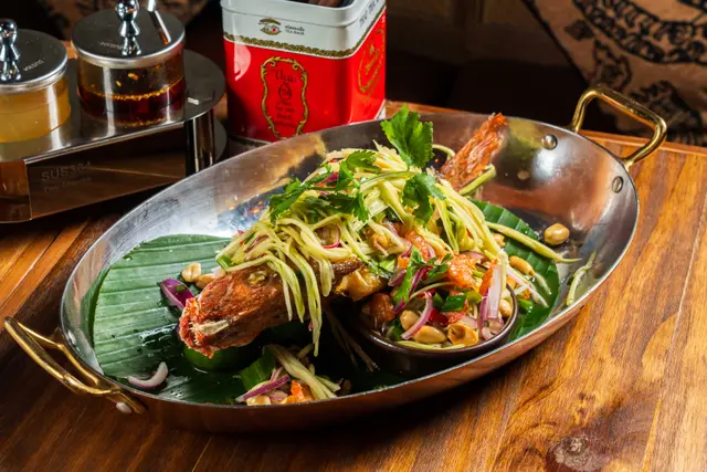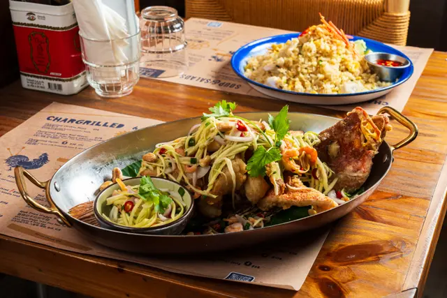 🇭🇰香港中環 🅲🅴🅽🆃🆁🅰🅻, 🅷🅺📍店名|🅽🅰🅼🅴:#BKK突然想食泰國菜,見到中環呢間好似幾唔錯地點係PMQ,行斜路真係嚇死人😅環境好舒服好泰國feel,Staff都好熱情!餐牌選擇唔算勁多,適合選擇困難嘅人💯必食|🅼🆄🆂🆃 🆃🆁🆈: 蟹肉炒飯|ᴄʀᴀʙᴍᴇᴀᴛ ꜰʀɪᴇᴅ ʀɪᴄᴇ|$168炒飯炒得勁乾爽,蟹肉超大粒,而且勁多!唧啲青檸汁落去,再落少少辣椒魚露,成個味完全昇華華!而且食落去好fresh,唔會食到好飽泰式和牛炒粿條|ᴘᴀᴅ ꜱᴇᴇ ᴇᴡ|$158即係泰式炒河,成個河粉超級有鑊氣,而且每一條粉都非常入味!和牛香濃可口,加咗辣椒魚露又係勁好味!食到停唔到口炸原條紅鯛魚配青芒果絲沙拉|ꜰʀɪᴇᴅ ʀᴇᴅ ꜱɴᴀᴘᴘᴇʀ ᴡ/ ꜱʟɪᴄᴇ ɢʀᴇᴇɴ ᴍᴀɴɢᴏ ꜱᴀʟᴀᴅ |$298冇諗過係原條紅鯛魚咁多!佢係一條起咗肉嘅炸魚,然後上面鋪滿青芒果絲沙律!炸魚炸得超香脆,外脆內嫩,魚肉勁滑,加上個醬汁,簡直Perfect!而且份量超大泰式蒜蓉炒芥蘭苗|ᴡᴏᴋ ꜰʀɪᴇᴅ ʙᴀʙʏ ᴋᴀʟᴇ|$78泰式炒菜真係好惹味!今晚揀咗芥蘭苗,細細棵好爽口,夠鑊氣夠惹味⭐️推介|🆁🅴🅲🅾🅼🅼🅴🅽🅳: 泰式八爪魚配三巴醬|ᴄʜᴀʀɢʀɪʟʟᴇᴅ ᴏᴄᴛᴏᴘᴜꜱ ᴡ/ ꜱᴀᴍʙᴀʟ ꜱᴀᴜᴄᴇ |$198賣相好靚!八爪魚有微微嘅炭香,但唔會好濃,二八爪魚本身非常之腍,食落去好有咬口,加上青檸就夠泰式生蝦|ᴛʜᴀɪ ꜱʜʀɪᴍᴘ ꜱᴀꜱʜɪᴍɪ|$138生蝦都係正常水準啦!佢個海鮮醬幾好味今餐真係出乎意料之外,六道菜加一人一支啤酒,人均都係350左右,不論食物水準,服務同環境都非常之好#MFJ香港 #MFJ中環 #MFJ泰國菜 🧭地址|🅰🅳🅳🆁🅴🆂🆂:香港中環鴨巴甸街35號PMQ元創方A座Staunton地下SG09-SG14號舖💰人均消費|🅲🅾🆂🆃 🅿🅴🆁 🅿🅰🆇:HKD355✅推介指數|🆁🅴🅲🅾🅼🅼🅴🅽🅳🅰🆃🅸🅾🅽:5/5#mfoodjournal #thaifood #hkfood #centralfood #PMQ #中環 #中環美食 #泰國菜…Read More