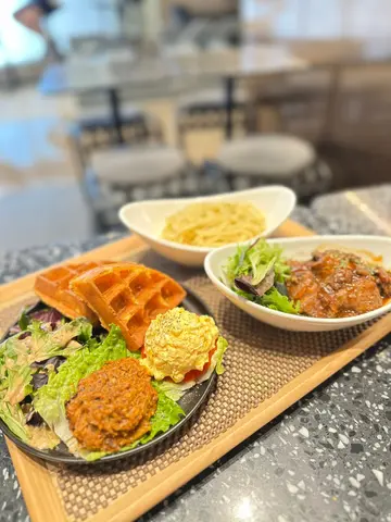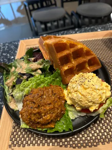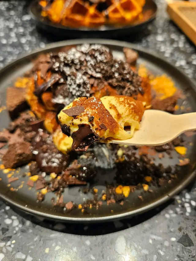 走進Black Coffee,感覺就像進入一個時尚型格的空間🤩 店內氛圍冷中帶溫,不急不躁,適合一邊品嚐餐點,一邊放慢腳步享受當下✅ 主食叫咗一份慢煮手撕豬窩夫配薯條❤️ 手撕豬肉經過長時間慢煮,帶著微焦的香氣與濃郁的肉汁,入口軟嫩不膩,搭配窩夫的外酥內軟,鹹甜層次恰到好處👍 旁邊的薯條炸得金黃酥脆,簡單卻令人想一口接一口😋甜品方面,曲奇忌廉窩夫算是「邪惡系」代表😈 窩夫烤得香脆,表面覆滿碎曲奇與濃厚的忌廉醬,甜而不死板,帶有一種療癒感😚 另一款自家製髒髒提拉米蘇🥰 令人眼前一亮🤩 少了令人膩滯嘅奶油忌廉,多了一層甜美又香滑嘅吉士,入口綿潤,咖啡香在口腔中蔓延😋 飲品方面,橙香白桃氣泡咖啡給人一種清新的驚喜❤️ 氣泡與咖啡的結合偏冷冽,但橙香與白桃的果甜讓整體更有層次,適合炎熱的天氣解膩😚 相比之下,榛子鮮奶咖啡則偏向柔和,堅果香氣和牛奶完美融合,口感順滑,喝起來相當溫潤❤️表面嘅天鵝拉花很美👍 …查看更多