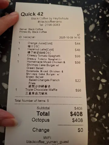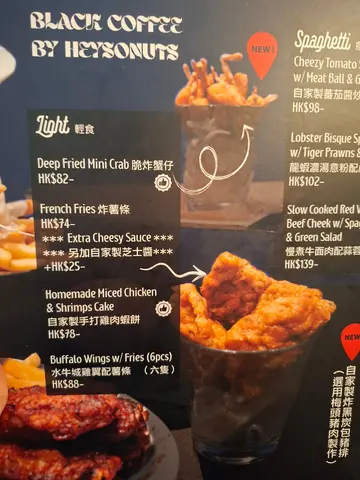 黑色充滿住神秘感🖤仲有種型格感覺🖤如果將暗黑風格加落美食到😎又會係點呢?~•~•~•~•~•~•~•~•~•~•~•~•~•~•~•~•~•~•~• ▪自家製手打雞肉蝦餅 ($78)即叫即炸,脆脆✨ 豐富蛋白質即雞肉🐔 • 蝦🦐加埋,冇咁單調😛.▪自家製炸黑炭包豬排三文治 配雜菜沙律 ($92) 雖然黑炭包🥪比較少見,不過黑色炸漿層既炸豬排就更少見 • 更特別🖤豬排Juicy有肉汁🐷三文治餡仲有生菜🥬 • 蕃茄🍅,中和油膩感配既雜菜沙律(加+$22)轉炸粗薯條,份量都幾多🍟.▪龍蝦濃湯意粉配虎蝦 ($102)意粉都幾掛汁🍝龍蝦湯汁濃郁唔會過鹹🦞虎蝦🦐爽口,剝左殼方便食。旁邊配雜菜沙律🥗.▪三重朱古力窩夫配朱古力雪糕 ($98)有甜品食更完美❣️特別係朱古力控,依個要食呀😋窩夫🧇係厚身個種,即整外脆內軟🤎配埋朱古力雪糕 • 朱古力醬 • 朱古力碎 • 朱古力粉 • Cream...係邪惡既...但好滿足🤪.▪厚泡沫黑咖啡 Blackccino ($44)綿密既泡沫🫧為齋啡增加層次感☕️.▪橙香白桃汽泡咖啡 Orange Black ($52)幾岩炎炎夏日,清新FreshFresh💦橙香 • 咖啡都出.~•~•~•~•~•~•~•~•~•~•~•~•~•~•~•~•~•~•~• 🔺免收加𝟏𝟎%服務費🙆🏻♀️ ~•~•~•~•~•~•~•~•~•~•~•~•~•~•~•~•~•~•~• …查看更多