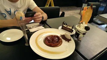 筆者向來都係black n white既fans, 最後一日必定要支持! 唯有order幾款一直最鍾意既甜品作為紀念。朱古力世界首先外觀很美。 最神奇的地方是最底部,竟然可以把乳酪凌空,原來低部有一塊朱古力。 味道 比較酸, 食上去比較醒神開胃, 另外陪上的朱古力醬…brownie及truffle。濃烈味道的朱古力配合清淡的乳酪,完美的配搭!富士蘋果批一上枱…完全有一種驚嘆嘅感覺,藝術品的感覺。 蘋果用酥皮包裹…再放入焗爐焗…蘋果既甜味出哂黎…而且汁滲透入酥皮裏面,非常好食。 加上 黑芝麻雪糕… 反而被蘋果既甜品搶左啲味道。 筆者就比較 鍾意以往 將雪糕放蘋果上面既做法。拿破崙唔洗多講, black n White 既拿破崙 絕對係舖中最好食既一件蛋糕。 好脆口 同食完都唔會覺得太滯…水準之作!希望black n white cafe 早日重開, fans們可以再食古師傅既甜品!…查看更多