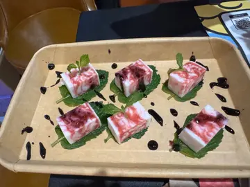 鹽燒雞腿肉 HKD15,雞腿肉夠嫩滑,簡單點些孜然粉已經好吃。汁燒金菇五花肉捲 HKD20,金菇爽脆,五花肉咸香,口流一流。鹽味枝豆 HKD20,枝豆清香,煮得夠淋。鹽燒雞中翼兩隻 HKD20,雞翼燒到皮脆肉滑,好吃。炸芝士年糕 HKD36,炸芝士年糕,中間芝士軟心,有點驚喜。