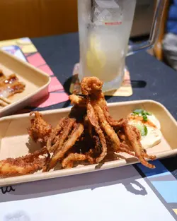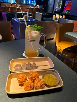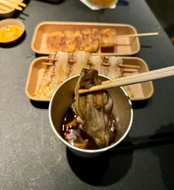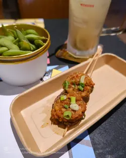 鹽燒雞腿肉 HKD15,雞腿肉夠嫩滑,簡單點些孜然粉已經好吃。汁燒金菇五花肉捲 HKD20,金菇爽脆,五花肉咸香,口流一流。鹽味枝豆 HKD20,枝豆清香,煮得夠淋。鹽燒雞中翼兩隻 HKD20,雞翼燒到皮脆肉滑,好吃。炸芝士年糕 HKD36,炸芝士年糕,中間芝士軟心,有點驚喜。