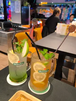 鴨屎香檸檬茶 HKD38,大大杯檸檬茶,味道都不錯。獼猴跳動 HKD38,幾香奇異果味,最重要還有奇異果肉粒,不錯。鹽燒牛舌尖 HKD20,這牛舌有點像滷了的牛舌,好吃。