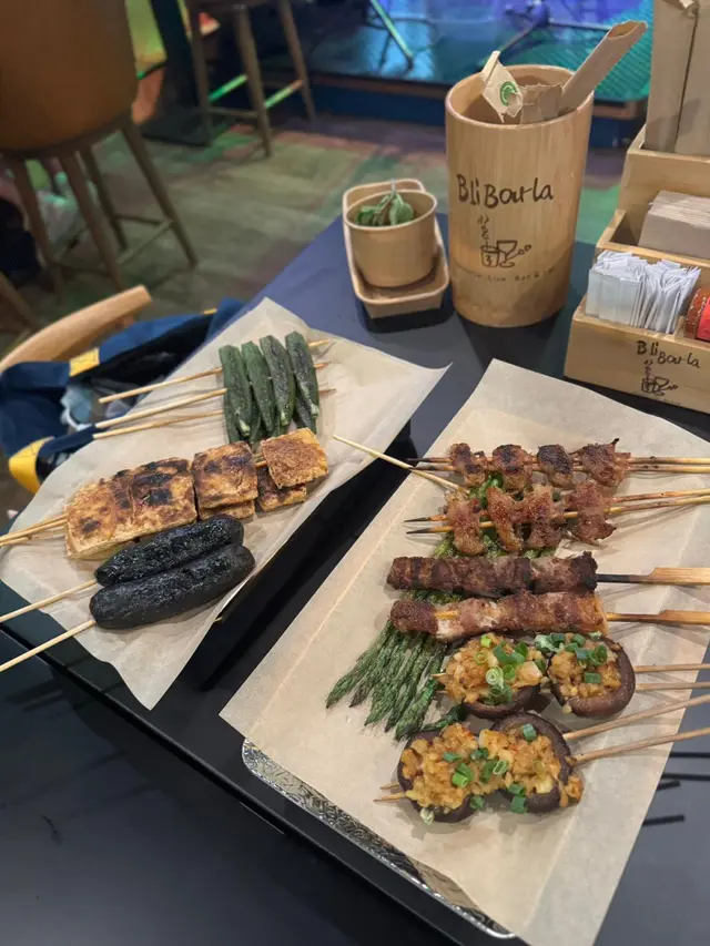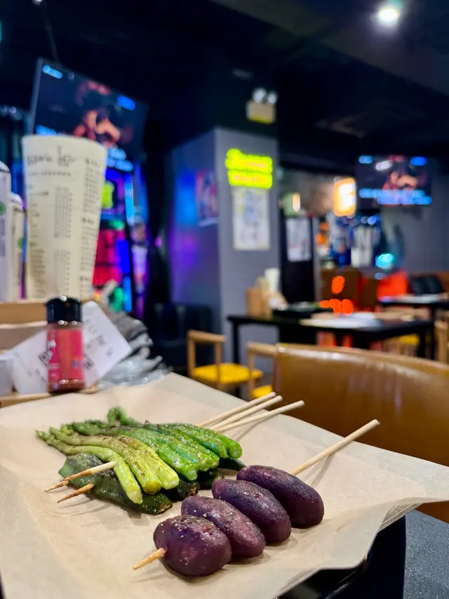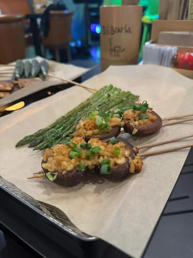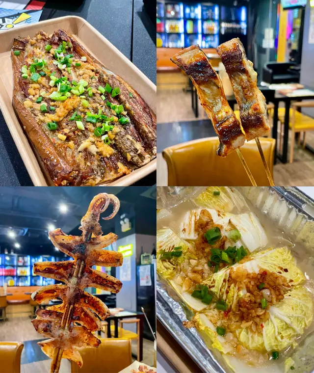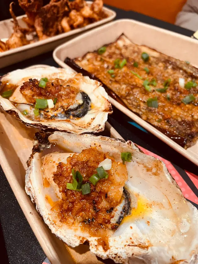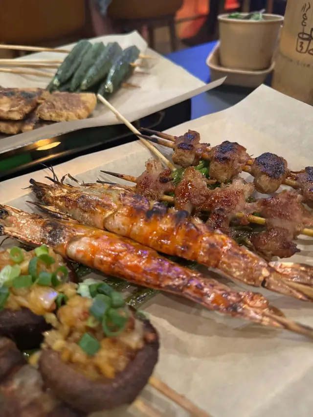 呢間串燒店環境幾舒服幾闊落,燈光柔和,音樂好Chill好Relax!另外仲有廂房,啱晒成班朋友gathering!串燒選擇多,而且有個盤,下面有蠟燭去heat住,十分貼心!🦪蒜蓉燒珍寶生蠔(買一送一)大量蒜蓉提升生蠔鮮味,肥美肉厚,鮮甜又滿足!🍆蒜蓉燒原條茄子蒜蓉鋪滿全條茄子,賣相靚又惹味,真係冇得輸!🍢汁燒白鱔外脆內軟,肥美又彈牙!🍡鹽燒雞翼烤到好脆口!🍢鹽燒五花肉肉質爽口,油脂甘香美味!🍡鹽燒牛舌尖牛舌燒得焦香,肉汁豐富!🍢孜然紅柳枝羊肉濃郁香氣,肉嫩唔會乾柴柴!🍡汁燒牛肋肉好香,厚肉得嚟,仲好惹味!🦐汁燒大蝦大大隻,燒得啱啱好!🍢麻辣雞腎爽口彈牙又帶麻辣,刺激味蕾!🍡焗蒜蓉粉絲娃娃菜連同粉絲同大量蒜蓉,娃娃菜爽甜!✨牛油燒bb蘆筍蘆筍爽脆冇渣,可以平衡油膩感!🍢烤饅頭外皮脆トト,金黃色,入面軟綿綿!🦑唐揚魷魚鬚炸得香脆,送酒超正,超推介!🥄韓式和牛炒飯足料,滿足到想食飯嘅人!🍻Asahi Sour (rose) (lychee)荔枝同玫瑰味道清新,大大杯很解膩,爽呀!…查看更多
