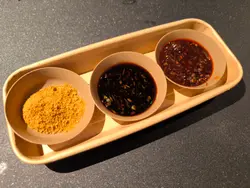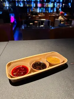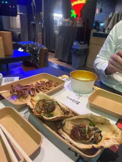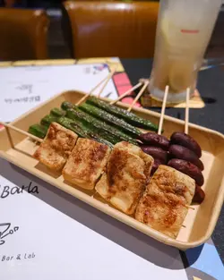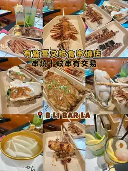 BLiBarLa 位於尖沙咀柯士甸道地鋪,餐廳播放音樂,座位坐得舒適,合適和朋友坐著吃著閒談。串燒美食選擇,除了正常肉類,豬、牛、雞、羊肉,還有海鮮,魚、生蠔、蝦,蔬菜類都有,此外,甜品,主食都有供應。飲品,啤酒少不得,還有紅白酒、汽水、mocktail、鴨屎香檸檬茶。入坐,就送上醬汁3款,孜然粉、芫茜醬汁和辣醬汁,不過燒物本身都有調味,全部都是合適配酒而吃,所以這醬汁都可以不用配吃。