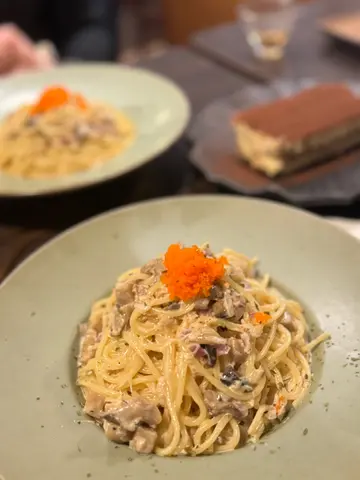 今日又嚟九龍城搵食啦,今次就試吓出名Tiramisu嘅Blossom,舖頭裝飾有種日式懷舊風,以深木色家具為主調,設有窗口位、Bar枱同皮製座椅,其實都幾啱打卡㗎🤣蟹肉忌廉意粉 $128份量有少少細,不過味道都幾豐富、蟹肉都好鮮甜配埋忌廉醬同蟹籽濃而不膩,每一啖都好滿足!Tiramisu $78呢個份量絕對對得住佢個價錢,佢哋嘅Tiramisu比較輕盈,食多少少都唔會有罪惡感🤣濕潤嘅手指餅沾滿香濃嘅咖啡香同酒香,比例啱啱好,識落好綿滑,果然係必食!
