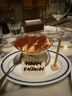 冷盤矮瓜少少辣非常醒胃八爪魚沙律非常新鮮煙肉卡邦尼通粉風乾了的豬肉鹹香脆口非常惹味變成主角乳豬皮脆肉嫩配菜冬菇非常可口、薯仔正常。甜品一定要食Tiramisu香滑可口加埋飲番杯洒完美