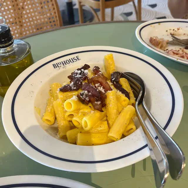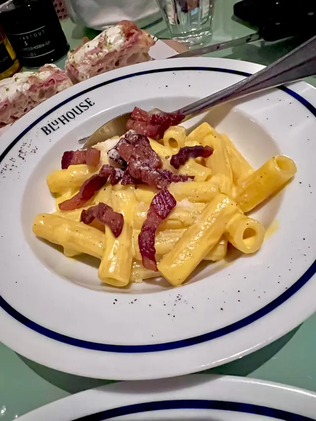 位於尖東Rosewood酒店裡的意大利餐廳,由意大利主廚主理,味道正宗價格親民,所以餐廳非常熱門,一位難求。 餐廳裝修開陽有格調,部分位置更可飽覽維港景色,日頭光線十足休閒寫意。🌇- Basket Bread 🥖免費附上的酸種麵包,外皮煙靱內裡軟糯,可配上意大利Galateo & Friends, Passepartout的初榨橄欖油及黑醋,果味濃郁口感飽滿。- Insalata Di Frutti Di Mare HK$298 🦐🥗聖誕特別菜式海鮮沙律,材料有新鮮虎蝦,魷魚,墨魚,八爪魚,青口,虎蝦鮮味十足肉質結實,魷魚墨魚爽口彈牙,八爪魚柔軟,再配上微酸的醃蔬菜,加入果香橄欖油發甜羅勒調味,香氣十足味道鮮甜,胃口大開。- Rigatoni Alla Carbonara HK$238 🍝經典卡邦尼粗管通粉,由簡單的材料煮成,非常考餐廳功力,粗管通粉口感al dente有蛋香,用上風乾豬面頰面炸香取其油脂及煙燻香氣,再加入蛋黃及綿羊芝士掛汁,醬汁口感輕盈味道濃郁,風味一絕。- Ragu HK$110 🍕Pizza Al Taglio 正宗羅馬方形薄餅,明火焗製,餅底有厚度,但口感香脆輕盈,加上油潤肉丸,又拉絲又香濃Mozzeralla及Parmesan cheese,配上羅勒香氣,味道有層次風味十足。- Paloma Amara HK$140 🍹BluHouse的signature cocktail, 以Tequlia為基調,加入西瓜及葡萄柚清新爽甜,再以檸檬氣泡水調配,口味清新輕盈,係紅白酒以外的好選擇。…查看更多
