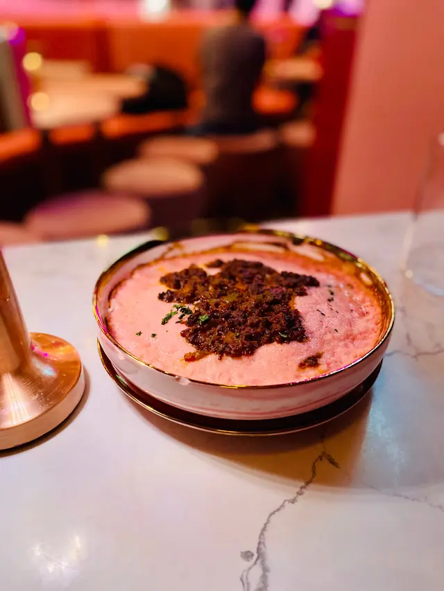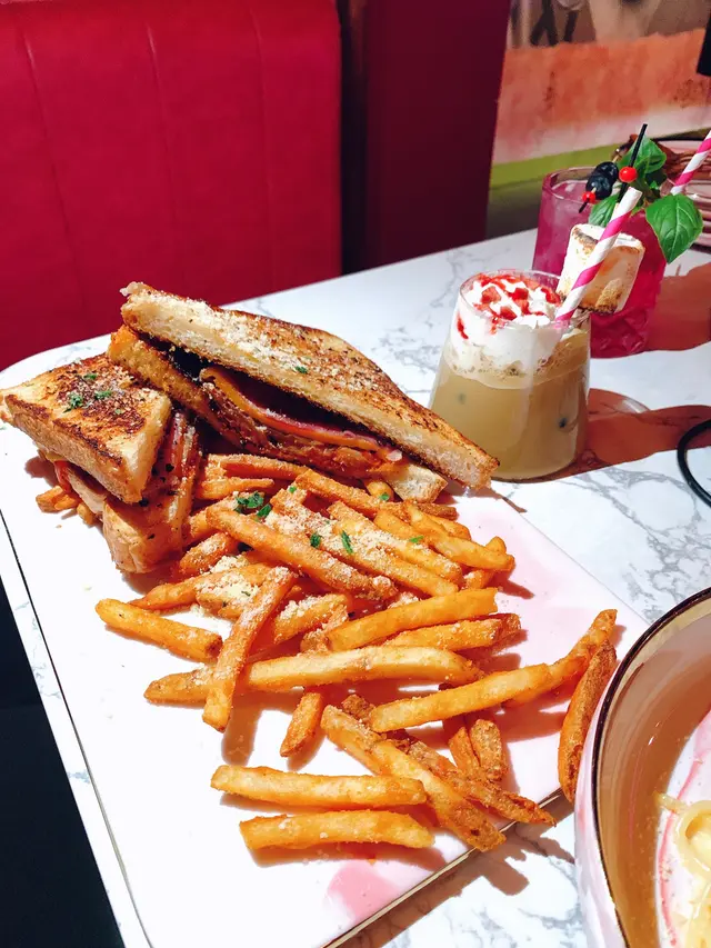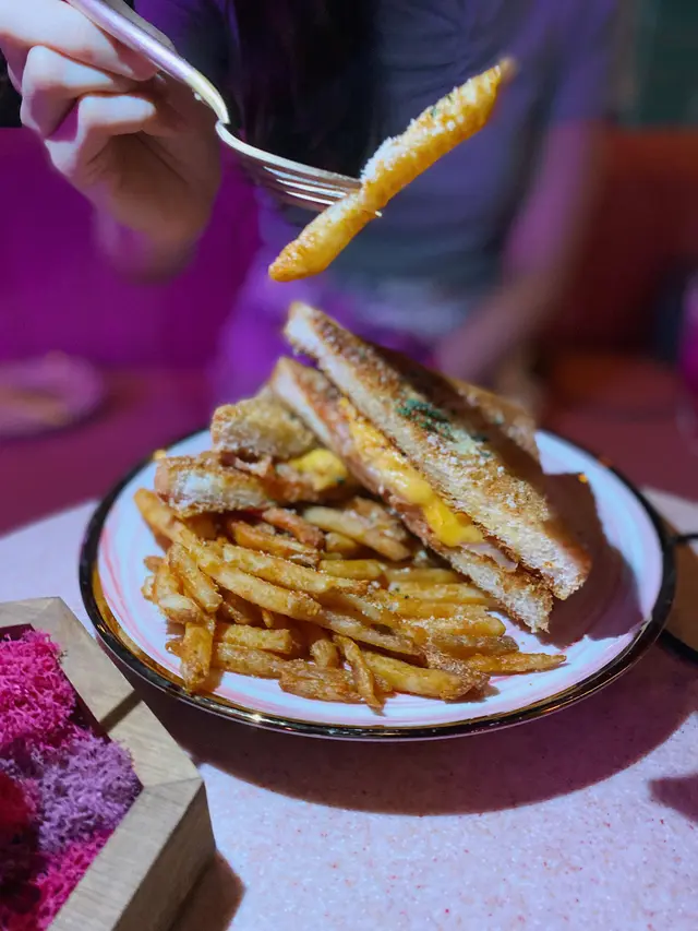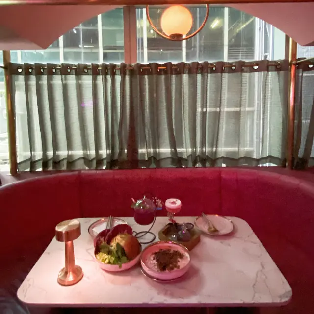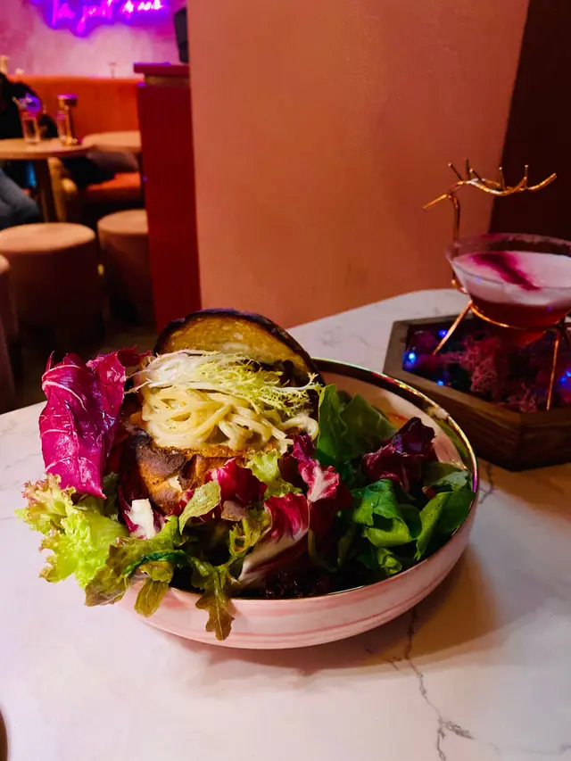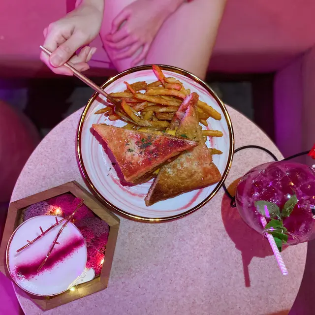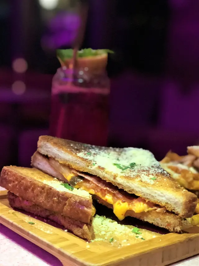 以粉紅色為主題酒吧,不過都有提供晚市,適合放工想同朋友飲杯野。餐廳整個感覺都好舒適,好岩三五知己來放鬆一下!.▪️Creamy Mushroom Spaghetti in Bread Bowl $168雖然係普通既mushroom 意粉,但我覺得越普通既菜式,更考大廚既功夫,因為大家食過無數次!而我係相當滿意既,意粉creamy得黎又唔會太漏,個包點少少汁又不過如果個包面可以脆少少口感應該更好!▫️Kimchi and Ham Grilled Cheese and fries $138呢道菜,未上都有好大陣既芝士味,真係超級濃郁,唔係個個都接受到。但食落又完全唔覺,反而係泡菜味更重,而薯條都好脆,唔知唔覺就食曬😛▪️OH MY DEAR $68Whisky底加左提子、石榴、蔓越橘,仲會用火槍向面燒一層,賣相一流!岩曬中意打卡既朋友,飲落酸酸甜甜,相對岩有飲開既野既朋友仔!▫️AMOUR $78Vodka底加左火龍果,薑同烏龍茶。飲落係健康既感覺,酒味淡薄,易入口。調酒師講野好溫柔:).老實講,本身對食物沒有太大期望,加上食物都唔算太多選擇。不過食物質素出乎意料之外,值得一試。…查看更多