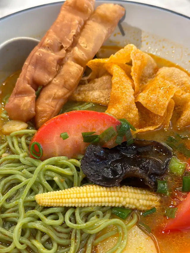 🍜🇭🇰🥢 不花巧嘅麵食✅喇沙豬扒湯麵 -$78呢個湯底真係值得一讚,喇沙味好香濃,椰香同埋辣味都好足夠。面底可以選擇米線、淮山麵、泡飯或者菠菜麵(加$3 )。我就揀咗淮山麵,好似公仔麵咁但係比較健康。配料有豆卜、兩條蘆筍,一片炸雲吞皮,少少蔥同芫荽。如果芫荽份量可以再多啲就好😋豬扒已經煎香同埋切開咗,都有五至六條,但有啲韌。✅麻辣肉燥雞扒熱撈麵 -$84呢個撈麵係台灣拌麵嗰隻麵底,掛汁得黎都幾有咬口,呢個麻辣汁嘅調配都唔錯,麻辣味俱全。配料略嫌較少,只有少少青瓜絲同埋少少肉燥。雞扒煎香咗,同埋已經切好件,味道OK。🆗豆腐皮蛋+$15其實呢個都幾惹味,係用豆瓣醬加咗豉油作出調味,少少辣,不過係鹹咗少少。豆腐切開咗兩塊,係滑豆腐嚟。✅炸墨魚卷+$15呢個同樣係跟跟餐小食,一份有兩條,外皮炸得好脆,俾咗泰式酸辣醬點,但我覺得浸落喇沙湯度好食啲飲品:凍飲+$3, 試咗凍檸水,熱奶茶,味道正常查看更多