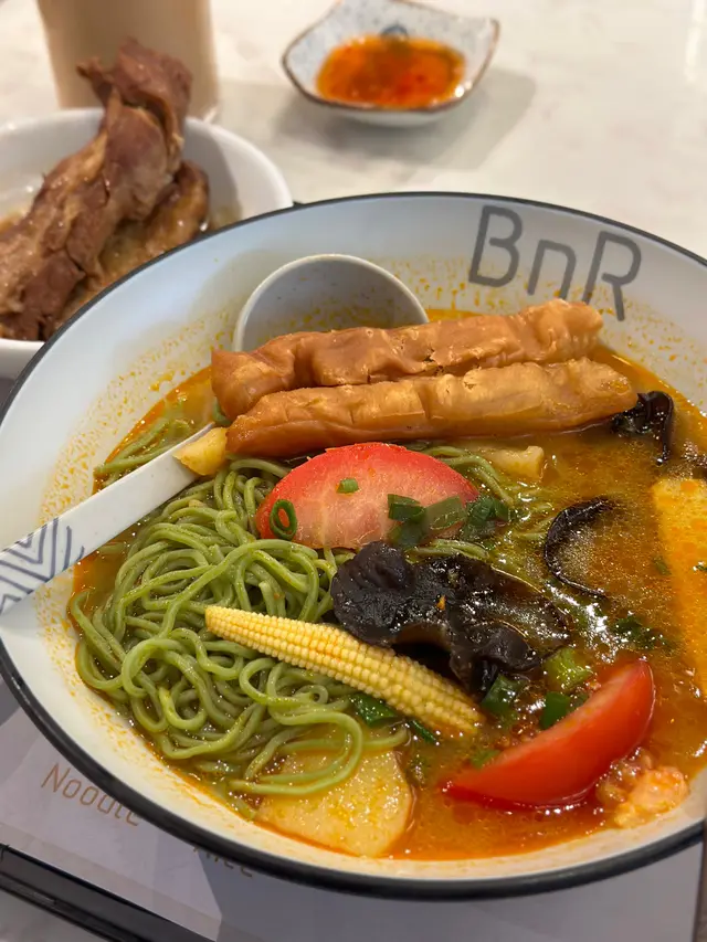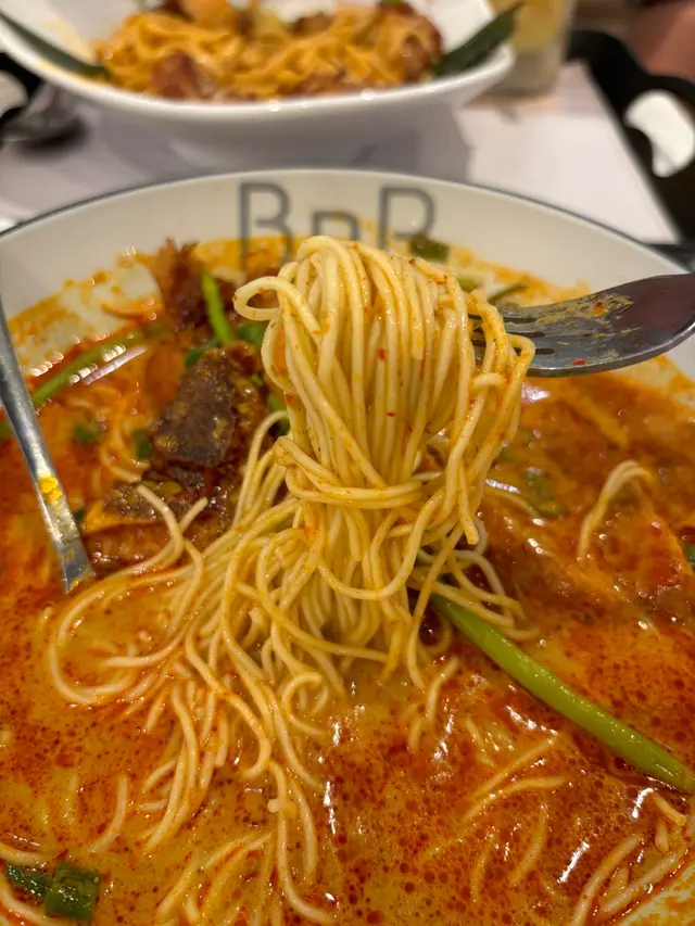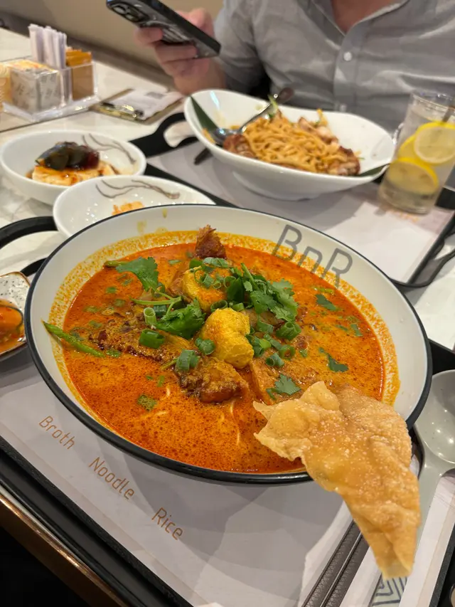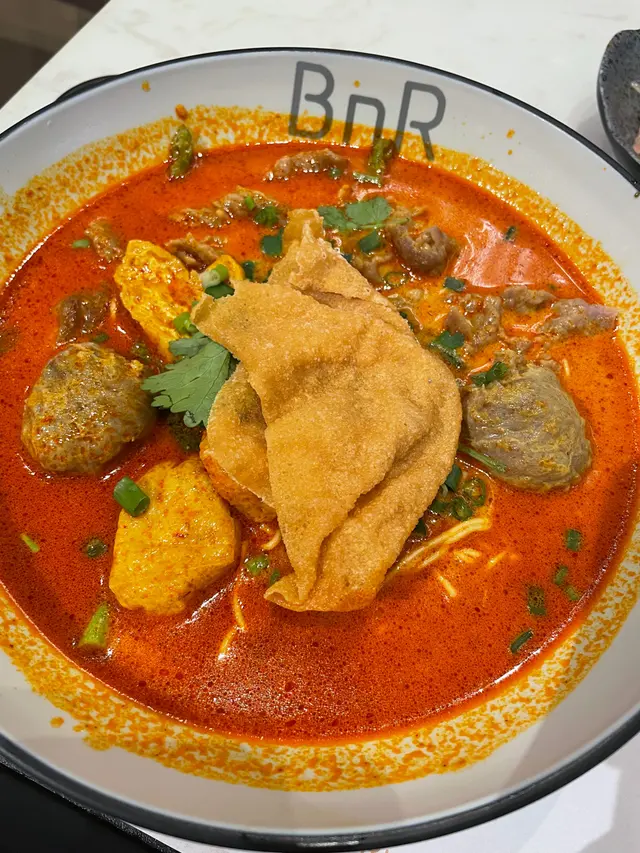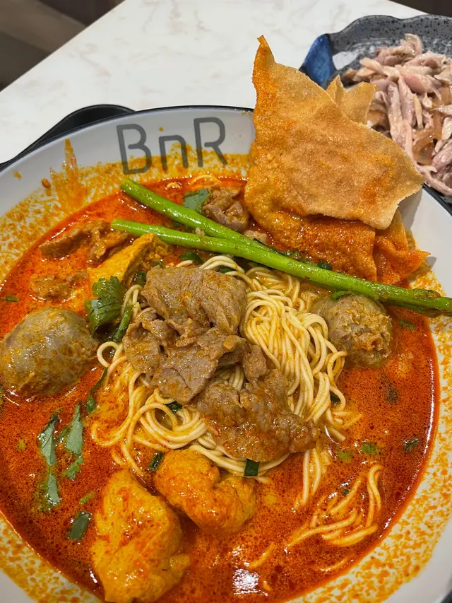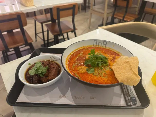 [📍九龍灣|BnR ]係Megabox行完街要搵啲野食,見到有間新派既餐廳,主打湯麵,撈麵同埋蒸飯,咁多選擇一於試下先。見到個menu又想試叻沙,又想試吓個蒸飯,又想試吓個雞飯,真係好難揀。最後決定叫個叻沙牛仔湯麵,天氣熱熱地就叫多個凍盤小食,海哲手撕雞,飲品叫咗椰汁爆珠紅豆冰。叻沙湯底好濃厚,而且有得揀淮山麵,淮山面爽口彈牙,又勁掛汁,塊脆脆同豆卜入哂味好正,牛仔嘅意思係牛肉片同埋牛丸,同叻沙湯底好夾。海哲手撕雞估唔到佢份量咁多,凍食令到啲雞肉更加結實,而且海蜇都會切到細細粒,雞肉加海蜇一啖食又唔同嘅口感。飲品呢個真係要試吓,椰汁就正常,佢嘅爆珠紅豆非常之特別,咬落去真係會爆汁,而且幾爽口,有啲似三文魚子,但係入邊仲有粒紅豆。幾特別值得一試。行到攰攰地想食間新派麵食,BnR係一個好選擇。查看更多
