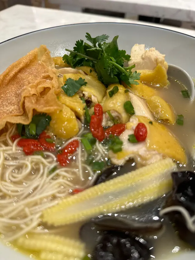 藥膳雞湯麵真係好正😋本身很喜歡麵食,這裏的藥膳雞湯底好出色,濃郁的雞湯底配合藥膳,入口香濃,非常順滑,湯好好飲。嫩雞好足料,非常嫩滑,湯底不油不膩👍🏻👍🏻仲可以揀米線、菠菜麵,淮山麵非常推薦。環境舒適,享受一碗靚雞湯麵食,真係一流,忍唔住會想飲埋啲湯😋好味,可以再encore。鮑汁籠仔蒸滑雞雲耳冬菇飯,非常有驚喜,米飯吸收了荷葉嘅香味,飯包裹着鮑汁蛋香,非常有口感豐富有層次😋雞肉香菇非常足料,套餐加配飲品仲有優惠。查看更多
