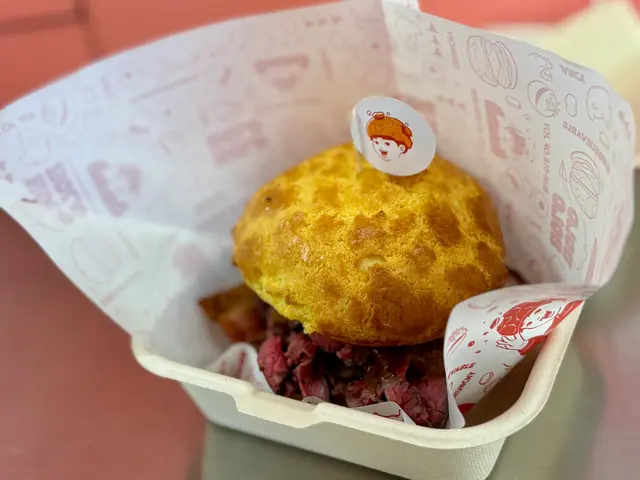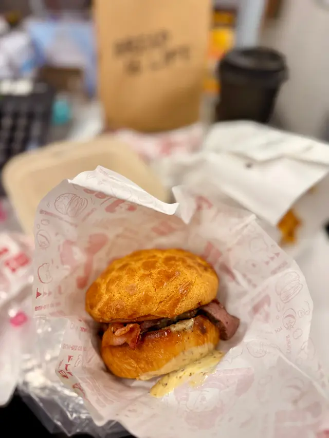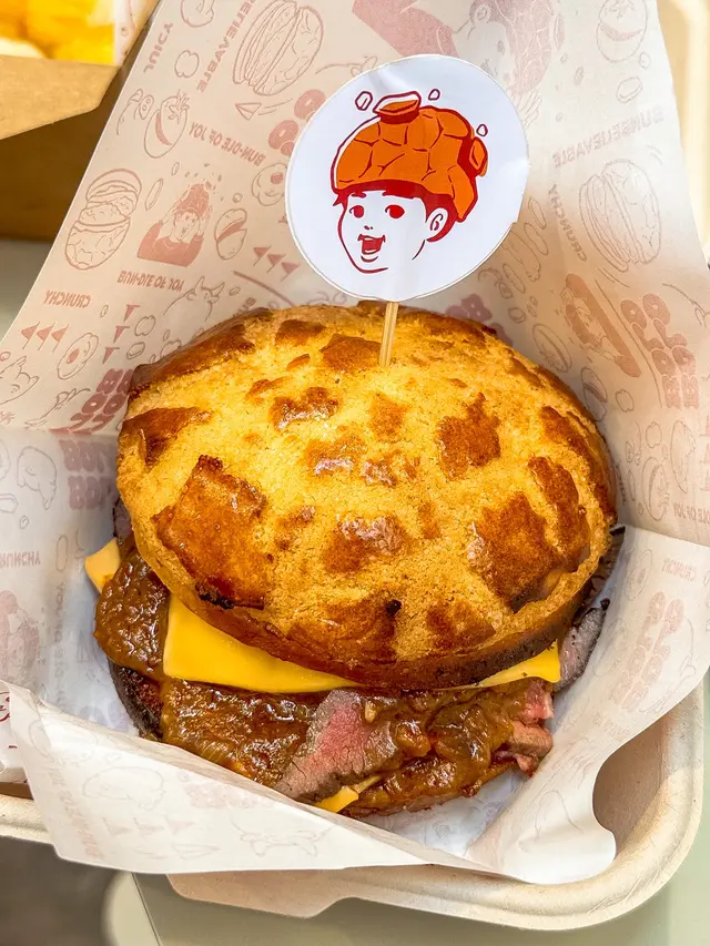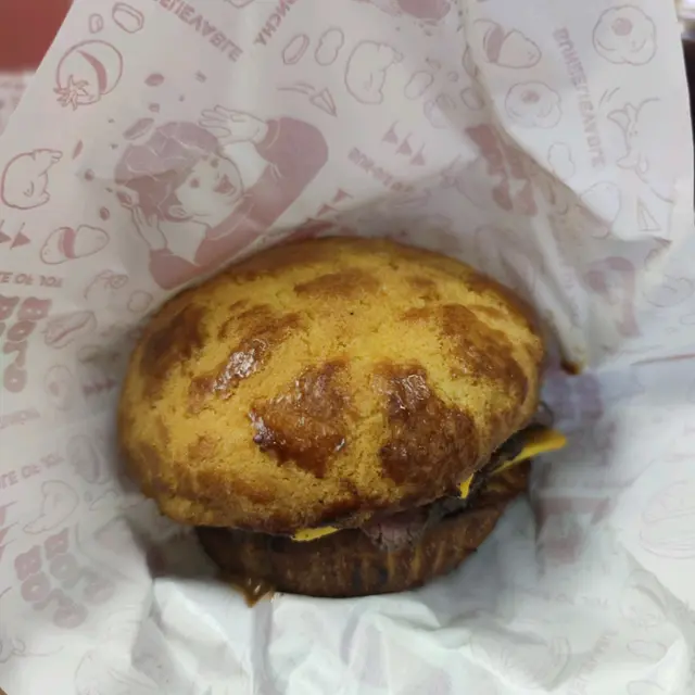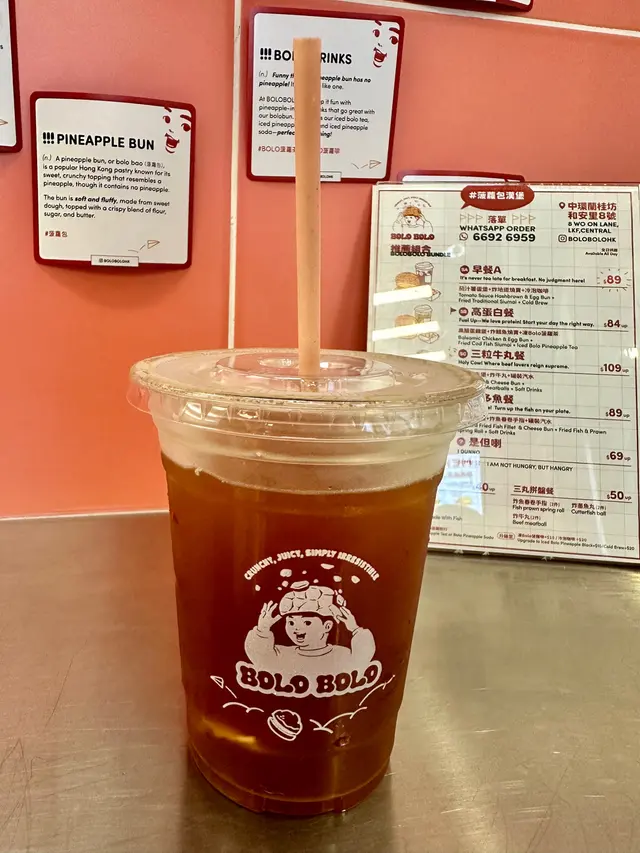 菠蘿包是不少人早餐或下午茶的好選擇☕️甚少會在正餐出現🍱但中環有間小店卻打破常規👊🏻令菠蘿包搖身一變,成為附近上班族的午餐新寵👨🏻💼———————————————————————食客可自由配搭心儀口味的菠蘿包😙懶得動腦筋的亦可選擇店家設計的推薦組合,當中已包含主菜、小食及飲品😎菠蘿包不止脆皮鬆化,整個包體都烘得十分透徹😍口感比不少麵包舖的更勝一籌🥳連皮雞扒煎得相當香口,肉汁豐富🐔炒蛋厚重,但略為偏熟未夠嫩滑🤨但整體味道鹹甜交錯,經已相當出色👍🏻外皮過硬是炸燒賣的通病😣但這裡的炸燒賣炸得十分酥脆🥹燒賣本體非常彈牙,魚味鮮香濃郁🐟令我喜出望外🤩冰紅茶中只見到一小片菠蘿乾🍍果味主要來自菠蘿糖漿,欠缺菠蘿果肉實在有點失色🥲不過入口味道仍算清爽👌🏻———————————————————————店家以菠蘿包作為漢堡包🍔再配搭多種肉類、配料、醬汁和小食,為傳統港式麵包注入新意,成功創造出既熟悉又新鮮的味道🥳…查看更多