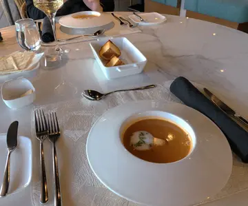 由於情人節關係好多好餐廳都full哂竟然比我搵到呢個酒店餐廳又有海景個情人節套餐又唔貴性價比高,打卡一流,除咗三文魚沙律同雪葩之外其他都好食首先先講前菜部分,例牌:餐包,龍蝦湯很好很濃味,三文魚沙律(沙律好食,但三文魚好難食咬唔開)又有骨好睇唔好食之後到主菜:肉眼(5成配龍蝦)煎得岩岩好唔會過生過熟,另外一份煎爐魚,肉質夠滑生,魚皮煎得硊口,每份本身都有跟特別醬汁,亦會每份都額外再比3種汁另外配搭最後甜品,燉蛋正常普通,而雪葩太粉我個人認為唔好食…Read More