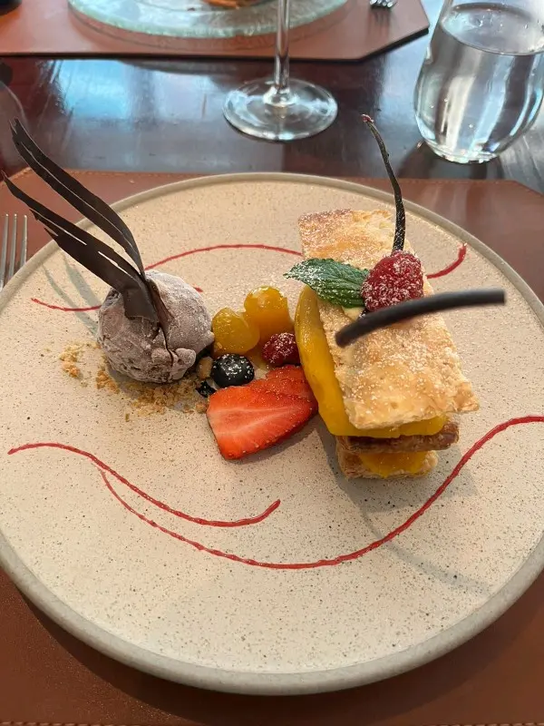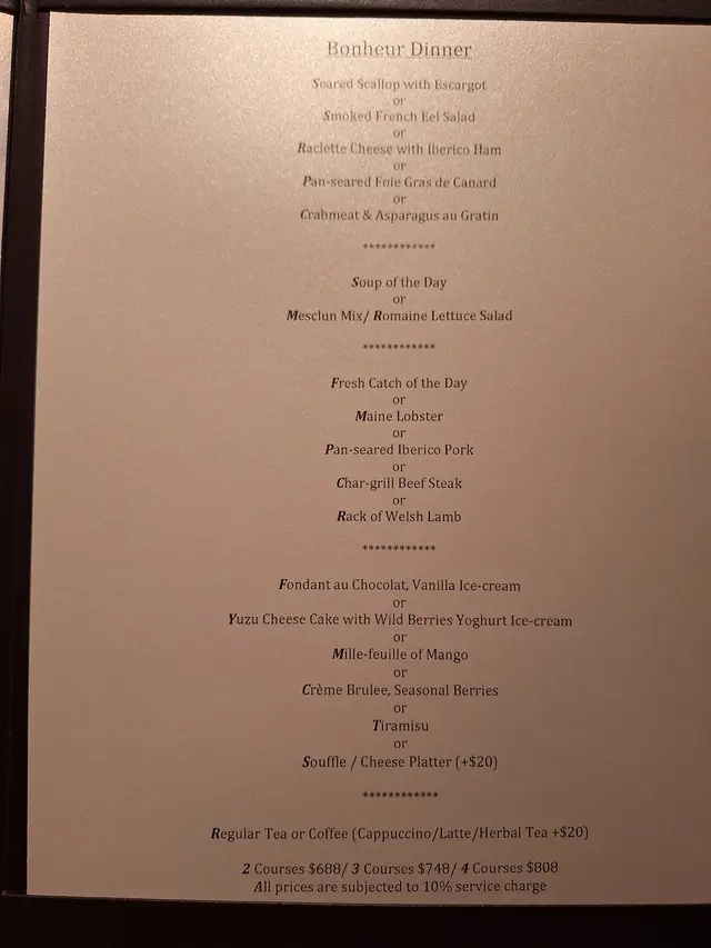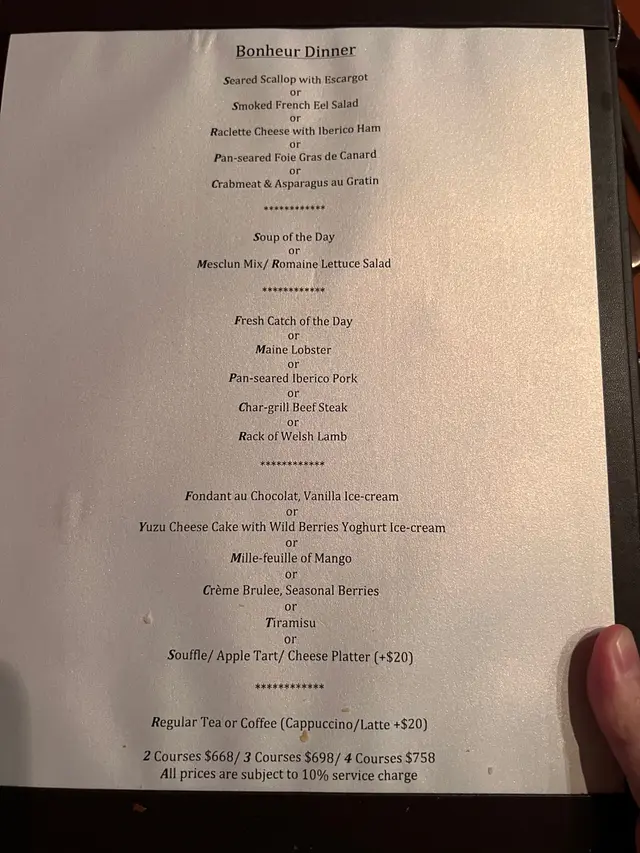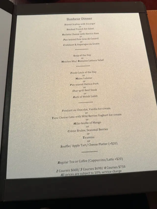 朋友帶我去呢間餐廳,第一次去,樓上小店,我地book左12點,早左十五分鐘到,佢哋本來未開門,好友善咁比我地坐低serve 我哋介紹菜式好清楚,服務十分週到。前菜叫左侍應推介的白酒青口,超級好食,麵包點汁食,主菜叫左魚同豬鞍,朋友之前食過話好味,份量都唔少,魚煎得香脆可口,好有驚喜!朋友之前食過甜品芒果拿破崙,真係好好味。全埸lunch hour 接近full, 12點坐到2:30pm, 好舒服。Business lunch 價錢大約$248-268, 有前菜or 主菜/餐茶/甜品,咁嘅質素真係好值。同埋今時今日搵一間有服務食物質素高嘅餐廳,真心覺得開心😃…查看更多