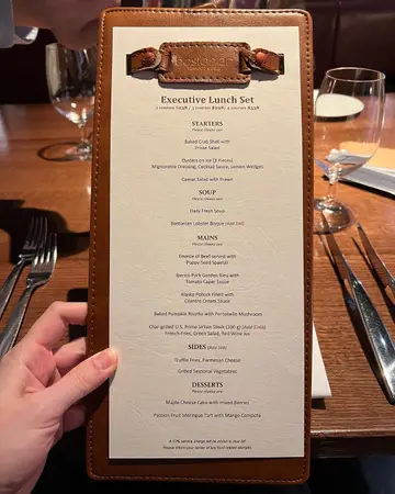 The Bostonian is a Seafood and Grill Steak House in the Langham Hotel. It has recently relocated into the space where the Main Street Deli American Style Diner use to be in the lower basement level of the Langham Hotel. We ordered from the a la carte menu despite there being some good value set menu offers.For the appetisers we chose the crab cakes ($320) and lobster bisque ($220). Note complimentary basket of breads was provided with free refill 👍The portion of 3 no. of crab cakes was quite good and there was plenty of crab meat inside them. The crab cakes were nicely fried on the outside giving a nice crispy coating wrapping the delicate crab meat inside. They went well with the tartar and mayo sauce that were offered with the dish. The lobster bisque was creamy and had a strong lobster flavour with some big chunks of lobster tail meat inside the soup. It was hearty and generous portion. For the mains we ordered the:Wild mushroom risotto ($298), the risotto was creamy and fluid without being too thick, the mushrooms gave it an earthy taste and the shaved flakes of Parmesan cheese sharpened the dish with a nutty flavour. The US 🇺🇸 Ribeye Steak 🥩 ($880) - We ordered a medium cook and it came out perfect. Tender and juicy with a rich beef flavour. The marbling of fat on the steak was balanced to ensure maximum taste whilst needing very little fat. There was also a perfect sear on the outside of the steak which gave it a subtle char grilled taste. We chose a black pepper sauce. The US 🇺🇸 Sirloin Steak 🥩 ($880) - We ordered medium cook despite the sirloin being a leaner steak and it was still tender and juicy, but less intense flavour as the rib eye. Having said that, it was a good contrast to the rib eye and the beef flavour was exceptional. We chose the béarnaise sauce for the sirloin. We chose two sides for the steaks which were sweet potato fries ($98) and mashed potatoes ($98). The sweet potato fries were crispy and fluffy and moist inside whilst the mash potato was smooth, silky and creamy and great side dishes for our steaks. Next was dessert where we could make 3 x selections of our choice for $128. We chose the New York Cheese Cake, Tiramisu and a Mille-feuille. The cheese cake was the best among them, followed by the tiramisu and then the Mille-grille, which had a crispy puff pastry. …查看更多