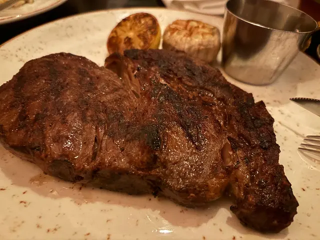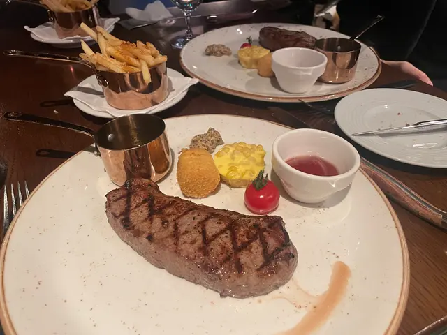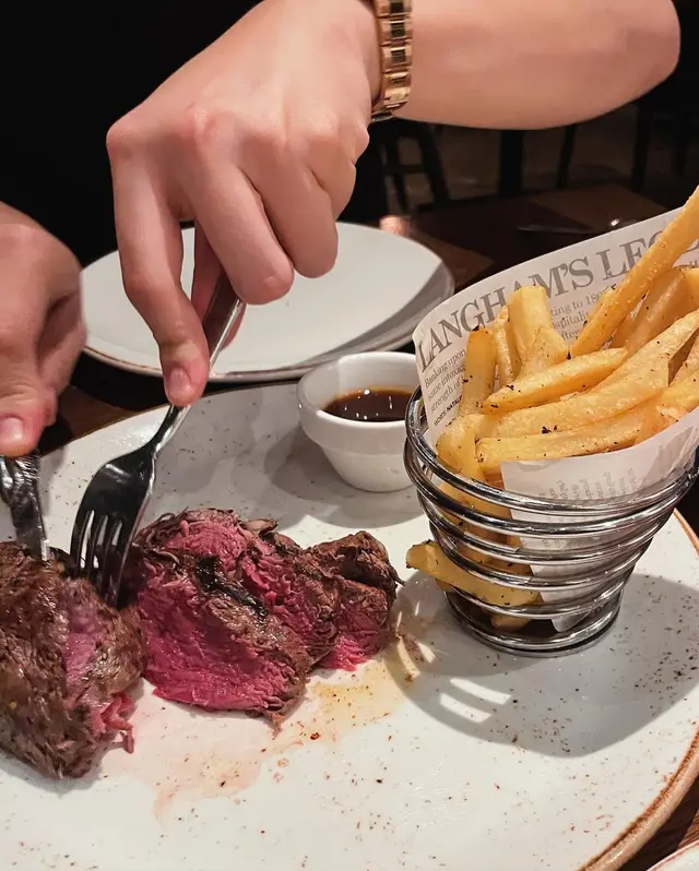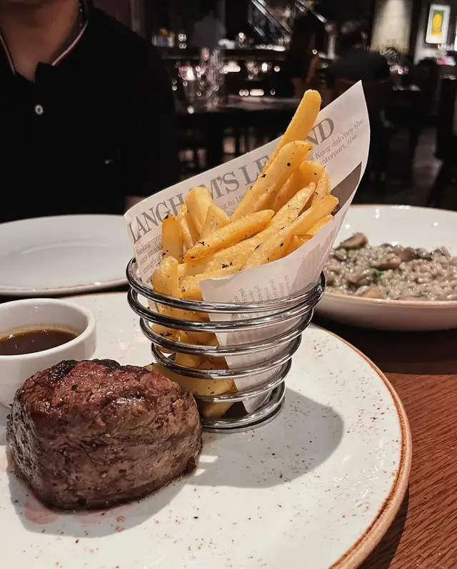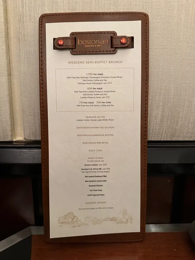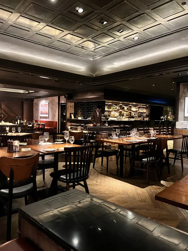 The Bostonian is a Seafood and Grill Steak House in the Langham Hotel. It has recently relocated into the space where the Main Street Deli American Style Diner use to be in the lower basement level of the Langham Hotel. We ordered from the a la carte menu despite there being some good value set menu offers.For the appetisers we chose the crab cakes ($320) and lobster bisque ($220). Note complimentary basket of breads was provided with free refill 👍The portion of 3 no. of crab cakes was quite good and there was plenty of crab meat inside them. The crab cakes were nicely fried on the outside giving a nice crispy coating wrapping the delicate crab meat inside. They went well with the tartar and mayo sauce that were offered with the dish. The lobster bisque was creamy and had a strong lobster flavour with some big chunks of lobster tail meat inside the soup. It was hearty and generous portion. For the mains we ordered the:Wild mushroom risotto ($298), the risotto was creamy and fluid without being too thick, the mushrooms gave it an earthy taste and the shaved flakes of Parmesan cheese sharpened the dish with a nutty flavour. The US 🇺🇸 Ribeye Steak 🥩 ($880) - We ordered a medium cook and it came out perfect. Tender and juicy with a rich beef flavour. The marbling of fat on the steak was balanced to ensure maximum taste whilst needing very little fat. There was also a perfect sear on the outside of the steak which gave it a subtle char grilled taste. We chose a black pepper sauce. The US 🇺🇸 Sirloin Steak 🥩 ($880) - We ordered medium cook despite the sirloin being a leaner steak and it was still tender and juicy, but less intense flavour as the rib eye. Having said that, it was a good contrast to the rib eye and the beef flavour was exceptional. We chose the béarnaise sauce for the sirloin. We chose two sides for the steaks which were sweet potato fries ($98) and mashed potatoes ($98). The sweet potato fries were crispy and fluffy and moist inside whilst the mash potato was smooth, silky and creamy and great side dishes for our steaks. Next was dessert where we could make 3 x selections of our choice for $128. We chose the New York Cheese Cake, Tiramisu and a Mille-feuille. The cheese cake was the best among them, followed by the tiramisu and then the Mille-grille, which had a crispy puff pastry. …查看更多