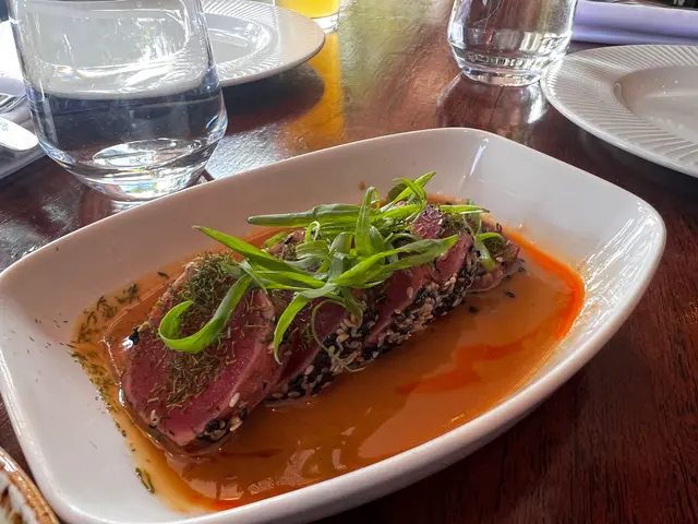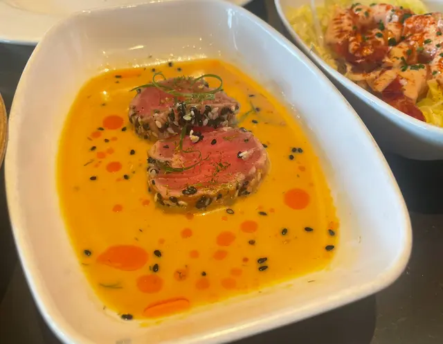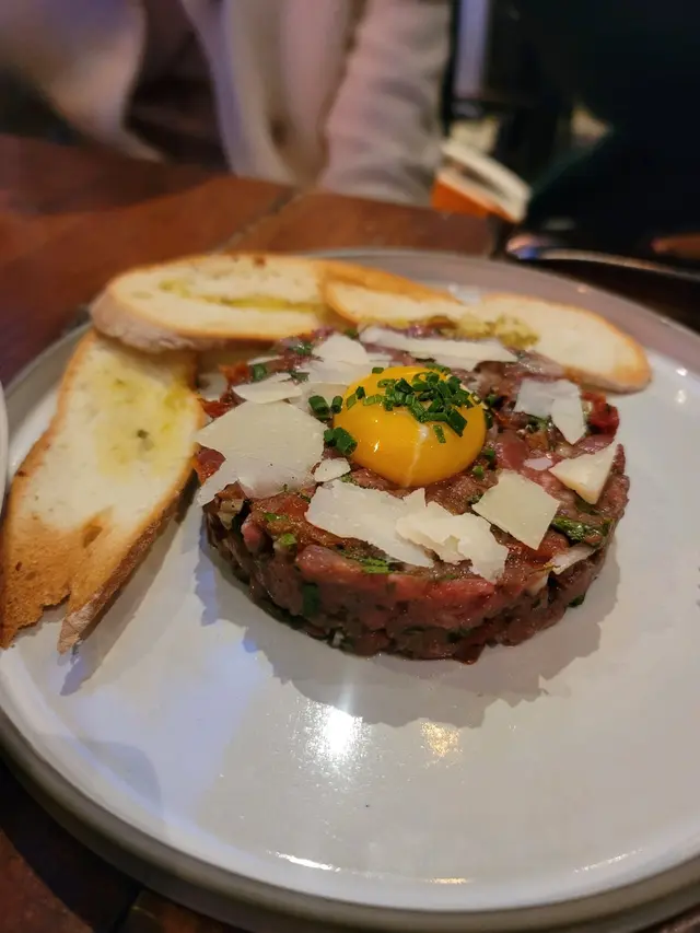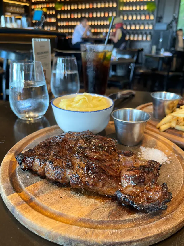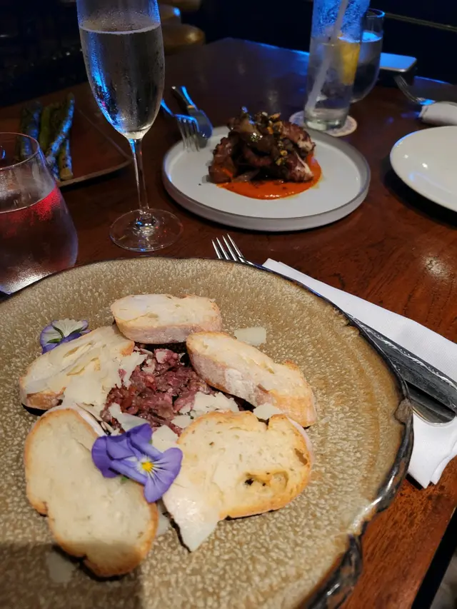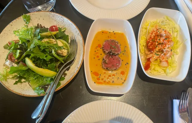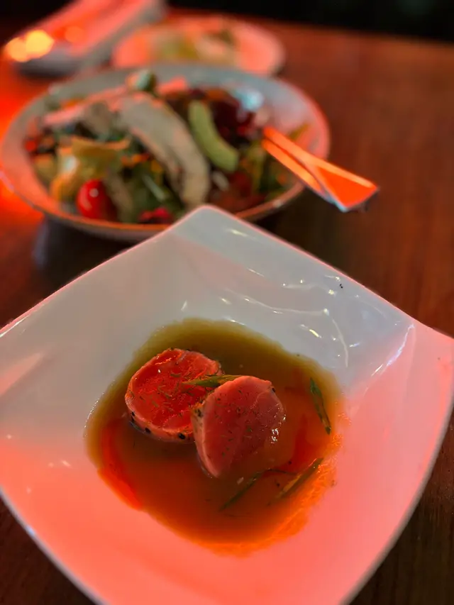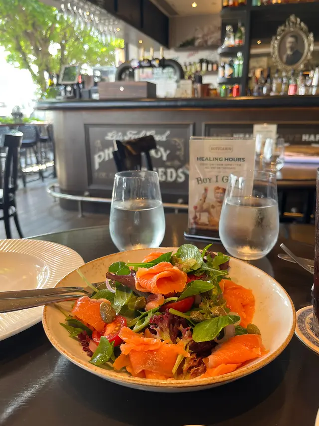 黑雨唔洗返工,即日book Restaurant Week menu. 一行3人,餐廳安排坐樓上梳化位,環境好好,服務亦冇得彈。Restaurant Week 既係3-course menu, 我哋全部揀seared tuna 做appetiser, Main course 就分別有steak, 牛面肉linguine, grilled chicken leg (我食個steak 煮得剛剛好)。Dessert 的心太軟, crepes 同 sorbet, 全部都好好食喎。仲有happy hour drinks 買一送一,埋單$11xx,咁嘅環境同食物,抵食。…查看更多