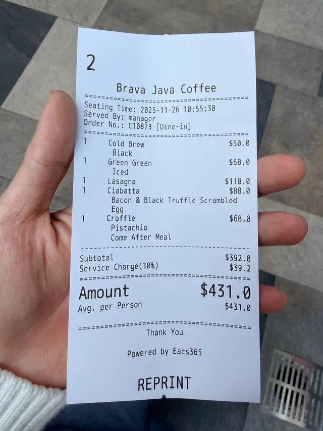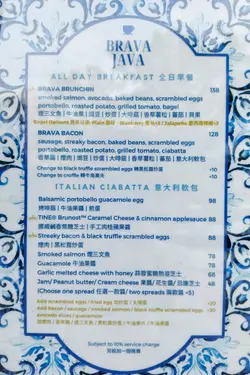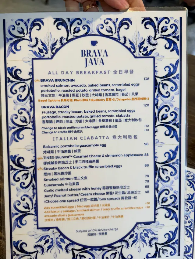 Brava Java餐廳入面只有幾張枱,門口室外有兩張枱,地方不算大,環境清靜舒服全日早餐煙三文魚細膩的煙燻風味,鮮嫩的口感,入口煙韌軟糯,肉質香甜,魚油甘香牛油果柔滑的質地和清新的味道,清新健康茄汁焗豆,香甜的茄汁,入口口感軟糯的黃豆炒蛋柔順香滑,濃郁的蛋香味 大啡菇經烤製的大啡菇,外脆內滑,水份充足濃郁的香氣香草薯粒金黃香脆的薯粒,輕輕地灑上香草,清新好味蕃茄新鮮的蕃茄切片,酸甜可口清新貝果外酥內軟牛角窩夫酥脆的外皮,內部輕柔蓬鬆,配蜜糖又熱又好味意大利軟包濃郁的烤香菇,牛油果醬滑潤的牛油果醬,入口清香的牛油果味,煎蛋蛋黃溏心,豐富的蛋香味,軟包口感柔軟入口煙煙韌韌,很軟熟抹茶拿鐵散發著清新的綠茶香氣,搭配奶泡的絲滑,表面的拉絲圖案漂亮,入口濃郁的綠茶香味和絲滑的奶香玄米茶拿鐵香濃的玄米茶味道與奶泡混合,成就獨特的風味,入口很香的玄米味,帶有微妙的奶香味道很夾開心果巴斯克芝士蛋糕,入口開心果的清香與微妙的甜味,底層奶油起司的濃郁與細膩,口感層次豐富,表面灑上果仁碎,中間軟綿,脆口的餅底,香濃清新…查看更多