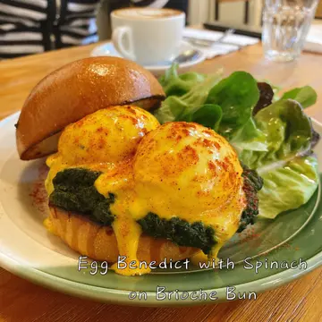 <Egg Benedict with Spinach on Brioche Bun>Brew Bros Coffee嘅Egg Benedict with Spinach on Brioche Bun好誘人