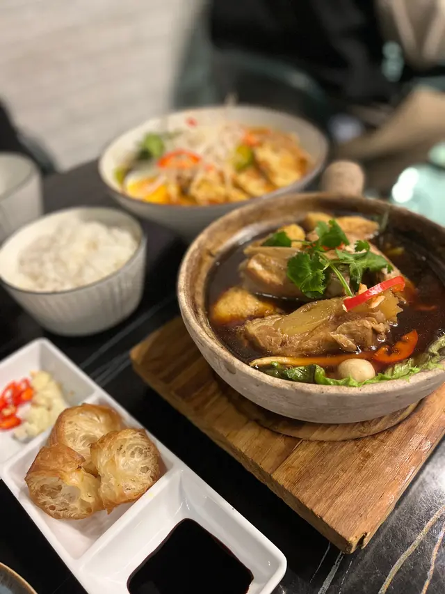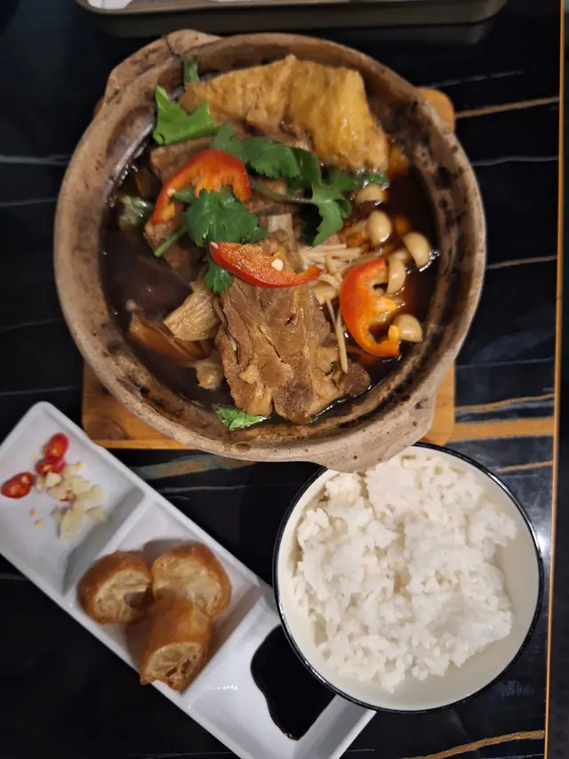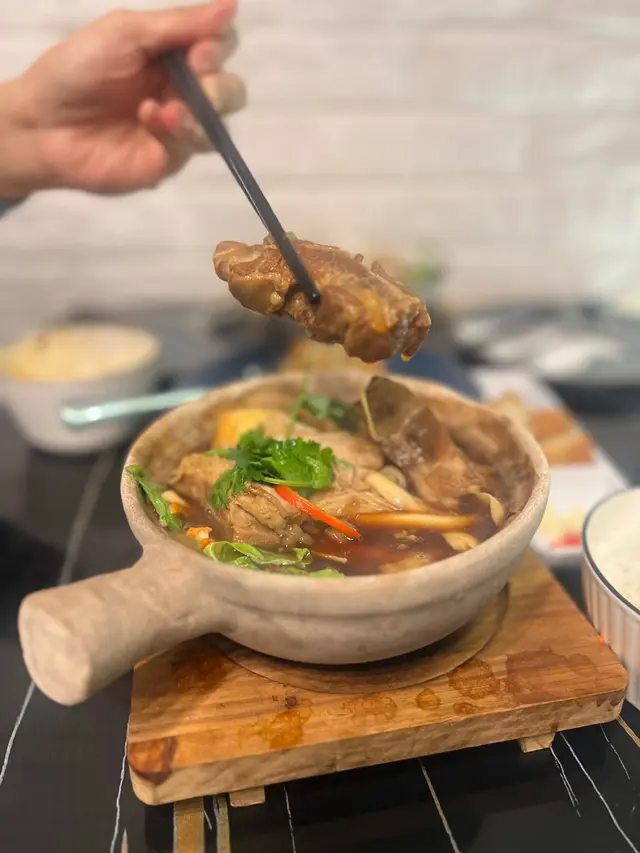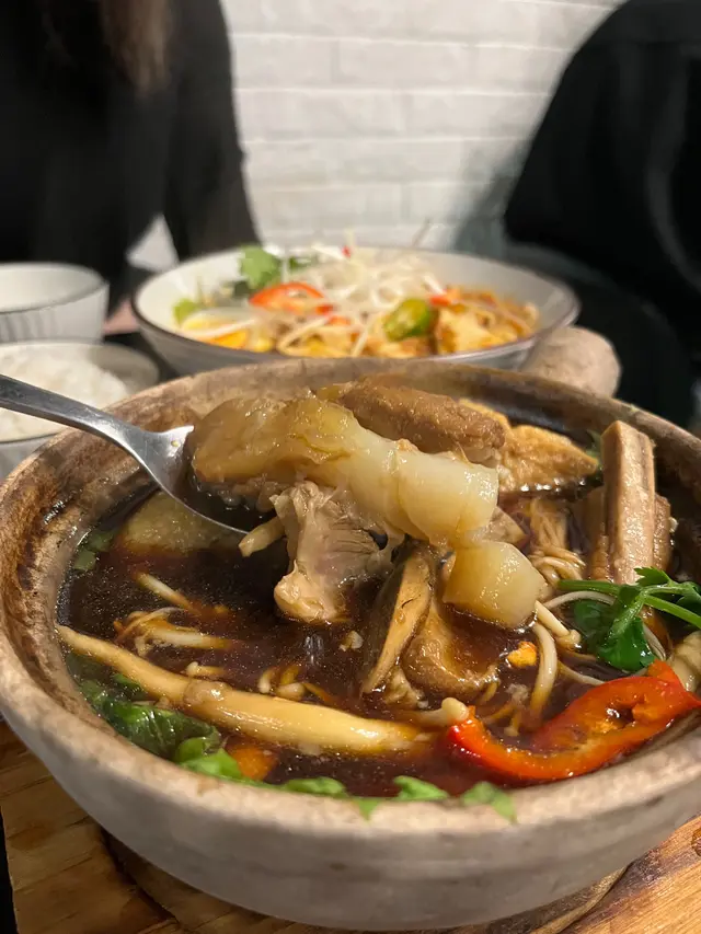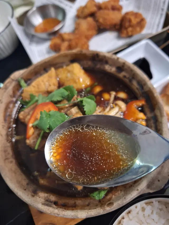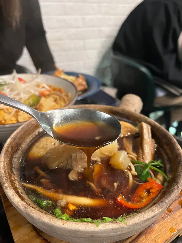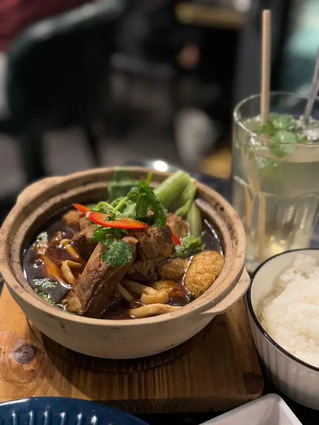 ⸝⸝⸝♡ ꔛ ꔛ ꔛ ꔛ ꔛ ꔛ ꔛ ꔛ ꔛ ʕ´•ᴥ•`ʔ ‧˚ 人氣招牌二人晚市套餐 ($476)(未連加一)1️⃣日本三得利黑啤雞翼🍗🍺原隻雞翼連雞翼尖同雞鎚選用黑啤醃過後🤔肉質特別嫩滑😝 雞翼好入味🤪味道咸咸甜甜🥰煮完後仍有黑啤濃郁麥香味😋黑啤既微苦中和咗雞肉既油膩😊雞肉好嫩滑😗2️⃣火熱砂煲香濃肉骨茶🍲🔥配白飯極度推介肉骨茶!🤤新鮮熬製😳用精選藥材熬製而成😻 香醇濃郁🤗無添加味精😎勁足料🫣肉骨茶的湯底色澤濃郁😊濃郁藥材香氣🤓飲落唔會苦澀😌反而帶有一絲回甘😝豬肉燉煮得非常軟爛🤓肉質鮮美😋充分吸收湯底精華🥰慢煮嘅豬軟骨燉煮得軟糯Q彈😊充滿膠質🥹🥰 油炸鬼吸收肉骨茶湯汁😊變得更加鬆軟入味😝口感豐富🥖絕對值得一試!👍3️⃣雞絲扎肉咖喱叻沙湯麵 🍜🌶️叻沙湯底酸辣適中😄店員話湯底用多款新鮮蔬菜同香料炒製而成 😏飲落冇椰奶香味🥛以香辣偏酸味為主🤔多層次豐富🤤口感獨特😋摻摻麵條口感Q彈爽滑😍吸附了湯汁精華🍜 雞絲同扎肉非常鮮美😙4️⃣話梅桃膠羅漢果茶(凍) 🍹🧊☺️酸甜清爽😇非常解膩😋話梅酸甜🤓桃膠Q彈🤩羅漢果清甜🤩🍹 具有養顏美容的功效🤪非常適合女生享用👧🏻5️⃣柚子伯爵 (常温) 🍹🍊茶香四溢🤩清新怡人🍵 伯爵茶香醇😏柚子清香🤭🍊 ⸝⸝⸝♡ ꔛ ꔛ ꔛ ꔛ ꔛ ꔛ ꔛ ꔛ ꔛ ʕ´•ᴥ•`ʔ ‧˚ 🌟想知道更多美食🤪記得follow@mochicouple_hk啦😍🎉📸📍中環蘇豪士丹頓街21號地庫🚇港鐵香港站C出口,步行約9分鐘…查看更多