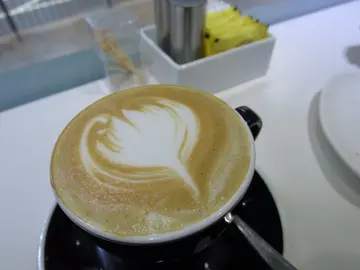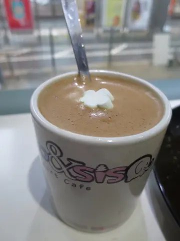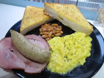 今次是由朋友請客及發板的,所有的食物都是即叫即整,非常新鮮!朋友的咖啡~她叫俾我的係72%香濃朱古力,仲有粒棉花糖係上面的,又香又滑,而且不算太甜。還有她叫了一個 All day breakfast 和 窩夫配原味乳酪與我一同分享。全日早餐的蒜蓉多士外脆內軟,而那個炒滑蛋又入口即溶!