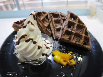 窩夫暖笠笠,而且也是外脆內軟的,再配上又凍又滑的原味乳酪一齊食,個感覺特別得黎又好夾wo~