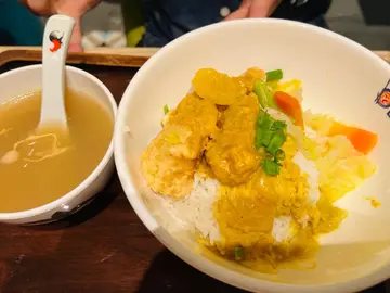 因為工作關係又嚟咗屯門 唔係好多時間 就喺近西鐵站嘅商場食個lunch 嚟咗呢間食東南亞菜嘅餐廳食飯 大約十二點嚟到 餐廳都差唔多坐滿😮 真係好好彩 咁啱有位馬來咖喱牛腩配小魚椰漿飯淨係睇隻碟都好feel到嗰種東南亞風味 面頭嘅太陽蛋煎得非常靚 咖喱唔算好辣 牛腩都幾多同煮得幾腍 撈埋側邊嘅花生同魚仔食 脆脆地又幾有口感☺️印尼炒飯好少見炒飯係用石鍋上 略嫌面頭太多餸 有啲難起咗個飯焦🙈 有兩隻蝦 幾塊蝦片 同埋兩串沙嗲 沙嗲串嘅沙嗲醬幾有花生味 個飯就正正常常 印尼甜豉油味 入面嘅餡都係三色豆 由於石鍋太保溫 一路食個飯都仲keep到好熱 冬天食會啱啲😂黑糖豆漿啲冰多咗少少 味道有啲淡東南亞餐廳嚟講算係中規中矩啦 有機會下次會再幫襯嘅😗