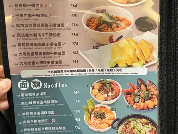 今日去咗呢間裝橫都幾靚嘅星加坡餐廳食晚飯,我哋去嘅時候時間都比較早,六點鐘左右,所以就冇乜人好快就入到去坐,稍後時間就見到好多人排隊,之後裏面就坐滿曬人。我哋叫咗個四人套餐,睇落都幾多嘢食。而且佢哋上菜速度好快,十分鐘就上曬所有嘢。肉骨茶當頭啖湯,啲肉煲得好冧,冇話特別重胡椒味,算唔錯。頭盤有酸辣鳳爪、煎魚餅、沙爹雞肉串、炸春捲、南乳雞翼。鳳爪好入未,酸味帶微辣,唔會辣到食唔到好開胃。煎魚餅同炸春捲正常貨色,係平時會食到嘅味道。雞肉串嘅沙嗲味就令我諗起印度風,但冇街邊香港沙嗲魚蛋嗰啲沙嗲咁惹味。雞翼食落口就有臘腸味,而且香酥,都算唔錯。主菜有海南雞半隻、咖哩牛腩配酥餅、海鮮蚊油麵、海鮮粉絲雜菜煲、馬拉盞通菜。雞肉質偏實,冇特別嫩滑。咖哩牛腩就正常,牛腩唔會太難咬。油麵好食,唔會太鹹。通菜就係入面最好食嘅,落咗唔少炸蒜,唔會特別辣 ,通菜咬落口好爽,好惹味,就係多咗少少油。最失色嘅就係個粉絲煲,粉絲佔咗八成,但係完全冇味。甜品係芒果雪糕班戟,正常班戟上面擺咗一球雲呢拿雪糕,跟住加咗啲芒果汁同碎芒果。雪糕同班戟就正常,不過要分開食,唔係既話一冷一熱好怪 。啲芒果同芒果汁唔知係咪煮嘅關係,偏酸唔帶甜,完全唔夾個甜品,我會覺得用蜂蜜好過。飲品嗌左黑糖豆漿同吉仔得飲,黑糖豆漿就正常,桔仔特飲就係糖水加桔仔,好唔好飲就見仁見智啦。連埋加一600蚊左右,只可以話cp值唔高。