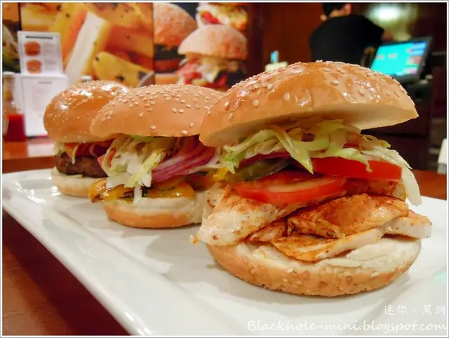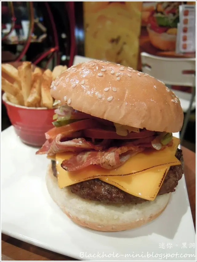 前身是「Wildfire」的世貿分店,搖身一變成漢堡包店「Burger Box」,此店最大的特色就是環境開揚,加上落地玻璃及海景,環境舒適。「牛肉漢堡 Classic Burger」$45八八掛掛的我向店員查詢那款漢堡最好賣,原來其中一款就是這經典的漢堡。牛肉漢堡最重要的當然是牛肉啦。它漢堡扒是用美國西冷肉加臀肉混合打成,足150克重,顧客可自家選生熟度。我這天吃的約八成熟,發覺肉仍帶有不少肉汁,配合生菜、蕃茄加洋蔥,就是最經典的配搭。「車打芝士漢堡 Cheddar Cheese Burger」$52若你怕口味乾身的話,可試試這款加了車打芝士的款式。車打芝士呈半熔狀態,令漢堡肉多一份鹹香之餘,口感亦較豐腴。「日式照燒香菇牛肉漢堡 Teriyaki Shiitake Mushroom Burger」$55三款漢堡之中,我最喜歡這個!鬆軟的包內夾著大量用照燒汁煮過的冬菇,混合牛肉後的口感更帶有層次感,甜甜的醬汁,確是別的地方吃不到的滋味。 …查看更多