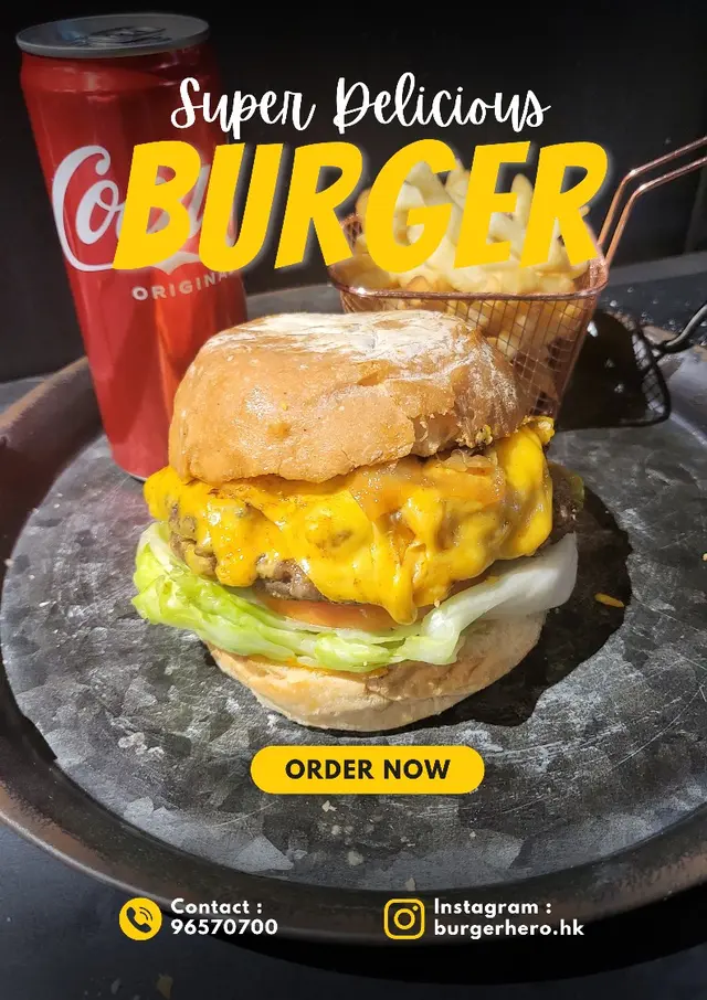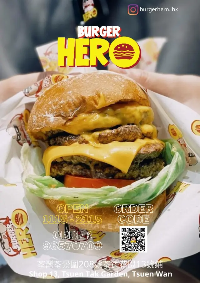 Burger Hero (荃灣) 網址: https://s.openrice.com/QrbS0Tza500 地址: 香港荃灣荃景圍208號荃德花園地下13B號舖 電話: +852 96570700