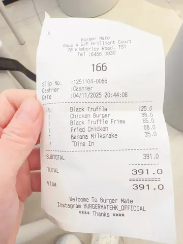 🎀尖沙咀。每日限量200個 即製牛肉漢堡🍔🎀🪄店名* #BurgerMate🔮地址*尖沙咀金巴利道78號金輝閣地下A號舖 🔮🗾分店地區🗾 沒有分店💰價錢$336 (2人)➖➖➖➖➖➖➖➖➖➖➖➖➖想睇更多同區推介👉地區搜尋🔍🗾#pickyme_尖沙咀剩系食呢一類👉食物類型搜尋🔍🍜#pickyme_西餐➖➖➖➖➖➖➖➖➖➖➖➖➖🍔 餐廳環境Burger Mate位於尖沙咀金巴利道,店鋪雖小且僅能容納少量顧客,但充滿工業風裝修風格。開放式廚房不時傳來煎烤牛肉的香氣。外籍店主態度熱情,能流利使用英語和國語與顧客交流。🍽️ 食物質素餐廳主打每日新鮮手工製作的漢堡,從麵包到安格斯牛肉漢堡扒均為自家製作,每日限量200份,通常會在晚上9點半前售罄。漢堡如黑松露蘑菇安格斯牛漢堡肉汁豐富,搭配鬆軟的自家製麵包,風味傳統而高質。👀評分💖💖💖💖💖🪄Premium Australian Wagyu $130🪄Black Truffle Mushroom Beef $125🪄Soft Drink $36這次品嚐餐廳兩款招牌漢堡,漢堡選用優質牛肉,在鐵板上煎得恰到好處。酥脆的麵包,加上豐盈的肉汁,牛肉油脂香氣濃郁但不膩。我個人推介可試黑松露蘑菇牛肉漢堡,打開便能感受到濃郁黑松露香,蘑菇的份量多得要滿溢出來,每一口都能品嘗到菌菇及黑松露香氣,與牛肉漢堡配合得很好。👀評分💖💖💖💖💖🪄Fries$45採用粗切做法,炸至金黃酥脆,內裡的薯肉保持綿密口感。(5個💖為最高)✴️✴️✴️✴️✴️✴️✴️✴️✴️✴️✴️✴️✴️⚜️整體評級⚜️🎈味道評分*😋😋😋😋😋🎈環境質素*🎇🎇🎇🎇🎈抵食程度*💰💰💰💰💰🎈服務態度*💌💌💌💌💌…查看更多