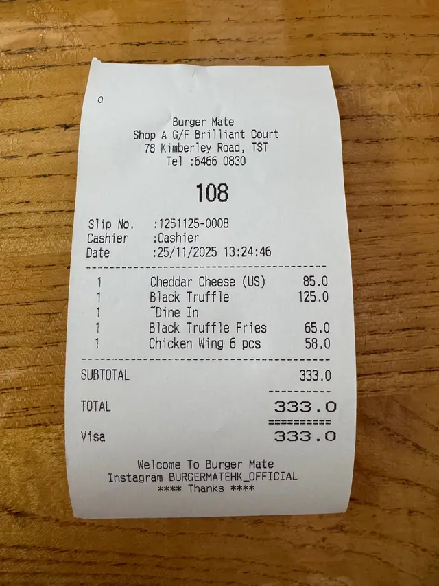 Burger Mate (尖沙咀) 網上訂座即賺Rice Dollars 網址: https://s.openrice.com/QrbS0ry0500~dLur5RAU9 地址: 香港尖沙咀金巴利道78號金輝閣地下A號舖 電話: +852 64612771