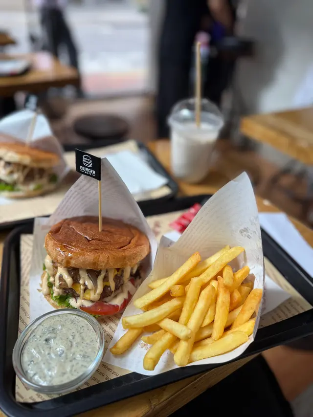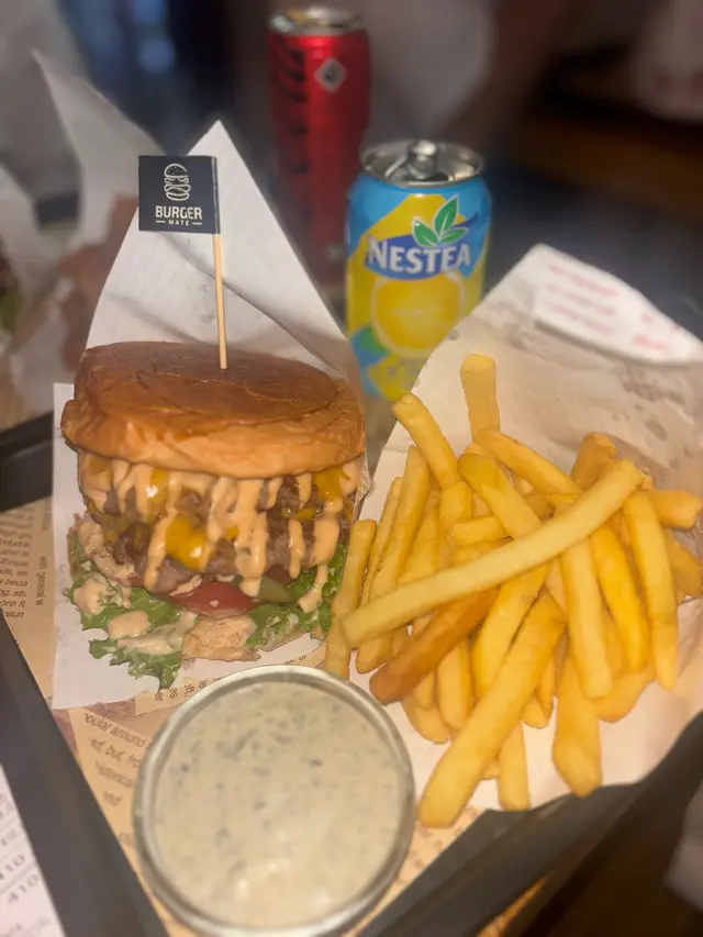🎀尖沙咀。每日限量200個 即製牛肉漢堡🍔🎀🪄店名* #BurgerMate🔮地址*尖沙咀金巴利道78號金輝閣地下A號舖 🔮🗾分店地區🗾 沒有分店💰價錢$336 (2人)➖➖➖➖➖➖➖➖➖➖➖➖➖想睇更多同區推介👉地區搜尋🔍🗾#pickyme_尖沙咀剩系食呢一類👉食物類型搜尋🔍🍜#pickyme_西餐➖➖➖➖➖➖➖➖➖➖➖➖➖🍔 餐廳環境Burger Mate位於尖沙咀金巴利道,店鋪雖小且僅能容納少量顧客,但充滿工業風裝修風格。開放式廚房不時傳來煎烤牛肉的香氣。外籍店主態度熱情,能流利使用英語和國語與顧客交流。🍽️ 食物質素餐廳主打每日新鮮手工製作的漢堡,從麵包到安格斯牛肉漢堡扒均為自家製作,每日限量200份,通常會在晚上9點半前售罄。漢堡如黑松露蘑菇安格斯牛漢堡肉汁豐富,搭配鬆軟的自家製麵包,風味傳統而高質。👀評分💖💖💖💖💖🪄Premium Australian Wagyu $130🪄Black Truffle Mushroom Beef $125🪄Soft Drink $36這次品嚐餐廳兩款招牌漢堡,漢堡選用優質牛肉,在鐵板上煎得恰到好處。酥脆的麵包,加上豐盈的肉汁,牛肉油脂香氣濃郁但不膩。我個人推介可試黑松露蘑菇牛肉漢堡,打開便能感受到濃郁黑松露香,蘑菇的份量多得要滿溢出來,每一口都能品嘗到菌菇及黑松露香氣,與牛肉漢堡配合得很好。👀評分💖💖💖💖💖🪄Fries$45採用粗切做法,炸至金黃酥脆,內裡的薯肉保持綿密口感。(5個💖為最高)✴️✴️✴️✴️✴️✴️✴️✴️✴️✴️✴️✴️✴️⚜️整體評級⚜️🎈味道評分*😋😋😋😋😋🎈環境質素*🎇🎇🎇🎇🎈抵食程度*💰💰💰💰💰🎈服務態度*💌💌💌💌💌…查看更多