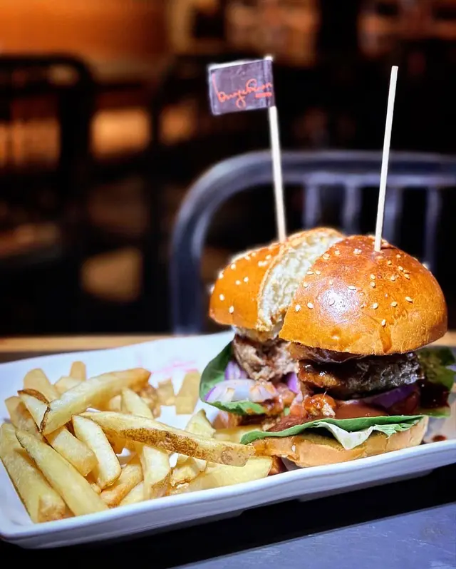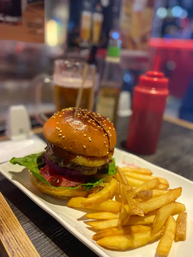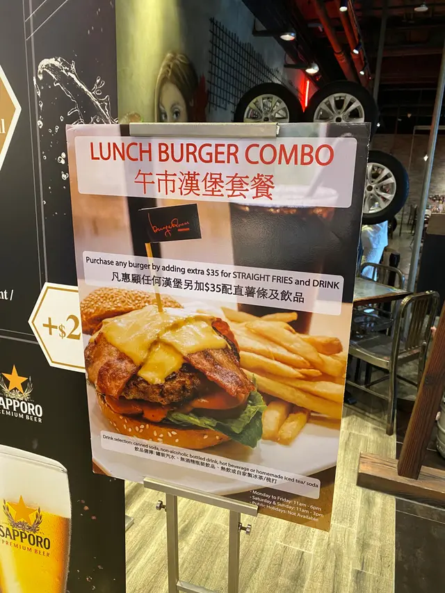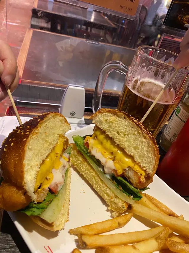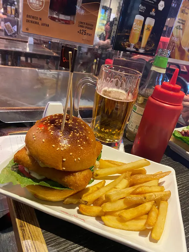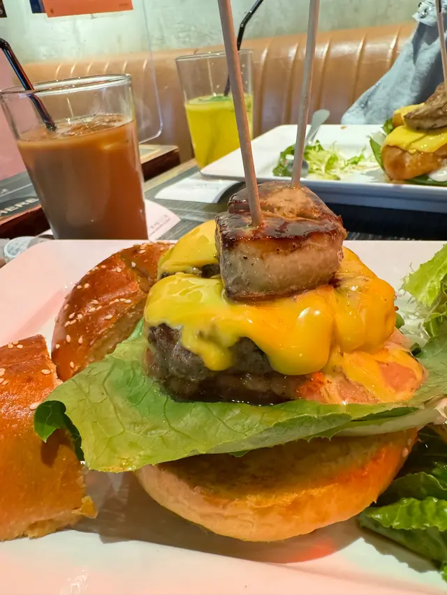 尖沙咀一間食漢堡嘅舖頭🍔🍟🍗我覺得佢嘅質素對比差唔多價位嘅連鎖店例如Shake Shack /Five Guys好上唔少😂 店舖裝修工業風,放工同同事過嚟飲嘢食嘢肯定好chill,我去到嘅時候已經過咗lunch time,唔使同人迫~菜單有非常多嘅選擇,可以自由砌一個心目中嘅burger出嚟,嘢食方面點咗杯菠蘿梳打,一杯好正常嘅菠蘿梳打😂如果份量再多啲就好另外點咗份雞翼,望到張相都知正,成隻雞翼炸到金黃色,但又唔乾身有肉汁👍🏽👍🏽至於主角burger,其實點之前真係用咗好耐時間諗,因為又想食雞又想食牛又想食魚,無奈得一個人,試唔到咁多嘢,最終揀咗個鱈魚鵝肝漢堡。鵝肝芝士鱈魚柳呢個組合真係冇得頂,成個味道好match,入口即溶,仲有塊蕃茄可以解膩,而兩塊包亦都冇話俾食材嘅汁整到濕晒軟晒,呢點好評。而伴隨漢堡嘅仲有沙律同薯條,所以食物份量方面係絕對夠👍🏽👍🏽…查看更多