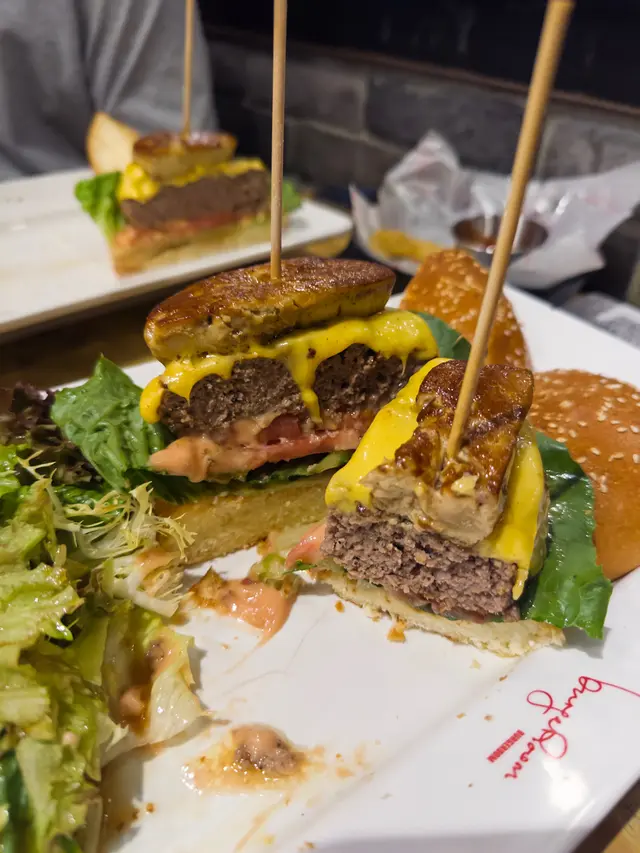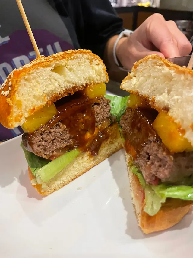在銅鑼灣這個美食戰場,要選出一款令人難忘、極致推介的漢堡,我的答案毫無懸念:「鵝肝牛肉漢堡」。這款集結了邪惡魅力與味覺震撼的組合,絕對是追求終極滿足感的食客必嚐之作。它的核心魅力,在於那近乎犯規的 「肉汁超多」!厚實的手打牛肉漢堡排,火候掌控得宜,外層帶著恰到好處的焦香,切開的瞬間,豐腴滾燙的肉汁便迫不及待地噴湧而出,幾乎要淹沒底下的配料。每一口咬下,濃郁的牛脂香氣混合著鮮甜的肉汁在口腔內奔流,形成最原始也最誘人的衝擊。這種澎湃的肉汁感,是漢堡靈魂所在,讓人完全忘記卡路里為何物,只顧著沉溺在這洶湧的肉慾狂歡裡。而將這份滿足推向巔峰的,正是那塊煎得完美、香氣四溢的 肥美鵝肝。表面微脆,內裡卻如絲綢般柔滑細膩,帶著獨特而濃郁的甘香。當溫熱鵝肝的豐腴油脂遇上滾燙的牛肉汁,兩者在舌尖交融、共舞,迸發出令人顫慄的奢華風味。鵝肝的脂香不僅沒有搶走牛肉的風采,反而像一位優雅的指揮家,將牛肉的野性鮮美昇華成層次豐富的味覺交響樂,餘韻悠長,叫人回味再三。為了承托住如此澎湃的肉汁與厚重的鵝肝。相較於某些刻意追求極度鬆軟的漢堡包,這麵包外層的確會顯得「乾爽」甚至「小許乾身」一些。然而,這絕非敗筆!這份「乾脆」恰恰是設計的巧思。它提供了必要的支撐力,確保漢堡不會在肉汁的猛烈攻勢下瞬間塌軟。更重要的是,當麵包內層接觸到洶湧而出的熱騰騰肉汁時,乾爽的麵包體反而能更迅速、更徹底地吸收那些精華,瞬間變得濕潤可口,與餡料完美融合。外脆內吸汁的口感對比,反而成就了另一種層次上的享受。總結來說,這款 Foie Gras Beef Burger 是銅鑼灣漢堡界的奢華標竿。 它用「超多肉汁」證明牛肉漢堡排的優秀品質與烹調功力,用「肥美鵝肝」堆砌出無可比擬的邪惡誘惑。即使麵包為了功能性而「小許乾」,也完全被內在洶湧的肉汁與油脂所征服、轉化,成為整體和諧口感的一部分。這是一份需要拋開顧忌、專注享受的終極漢堡體驗,其肉汁與鵝肝交織的震撼滋味,足以讓它登上「最推介」的寶座。若您追求味蕾的極致衝擊與滿足感,這款漢堡,絕對值得專程一試,感受那肉汁在口中流淌的罪疚快感!…查看更多