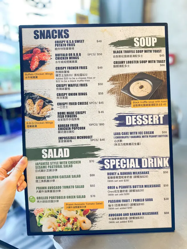 Burger小店但很高質!🍔😋會再二訪的漢堡餐廳𖡼 Trucker Burger見到係Best Sales所以叫咗個至尊漢堡 (原諒我走哂所有青菜) 🍔🥩真係啖啖肉,牛肉好Juicy,熟度岩岩好!包睇得出有烤過,很用心,套餐(+$25)🍟可以揀薯條或薯格,揀咗我最愛既薯格 YUM YUM!𖡼 水牛城雞翼水牛城雞翼就令我哋有啲失望😞 比較咸~味道亦一般,下次都係叫返佢地既Burger穩陣