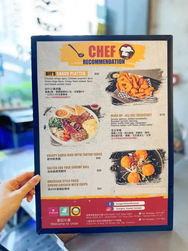 Burger's Friend Forever (MONTEREY Place) (將軍澳) 網址: https://s.openrice.com/QrbS0N5SA00 地址: 香港將軍澳澳南海岸唐俊街23號MONTEREY Place地下G22A號舖 電話: +852 61131497