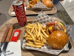 🍔 Cheese & Beef BurgerThis burger delivers on both presentation and flavor. The sesame seed bun is perfectly toasted, offering a light crunch that complements the juicy beef patty beneath. The cheddar cheese is melted just right, adding a rich, savory layer, while the fresh lettuce, tomato, and onion provide a refreshing contrast. The addition of crispy bacon elevates the umami profile, and the overall balance of textures — from the soft bun to the crisp toppings — makes this a standout gourmet-style burger.🐟 Fried Fish & Chips ReviewThe fried fish is golden and crisp on the outside, yet tender and flaky within — a textbook execution of classic comfort food. The batter is light and well-seasoned, allowing the freshness of the fish to shine through without being overwhelmed. Paired with thick-cut chips that are crispy on the edges and fluffy inside, this dish hits all the right notes. The dipping sauce adds a creamy tang that rounds out the plate beautifully.⭐ Overall ImpressionThis meal is a satisfying blend of indulgence and quality. Each component — from the burger to the fish and chips — is thoughtfully prepared with attention to texture, flavor, and presentation. It’s clear that the kitchen values both freshness and flair, making this a highly enjoyable dining experience.…查看更多