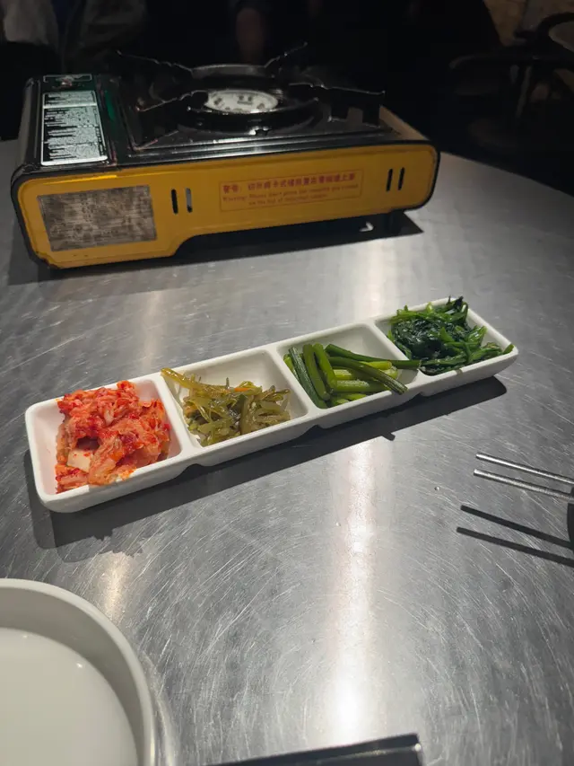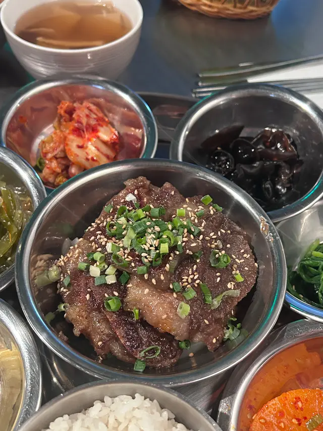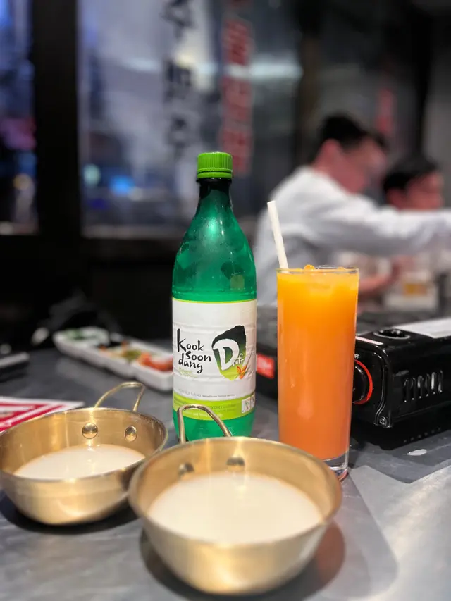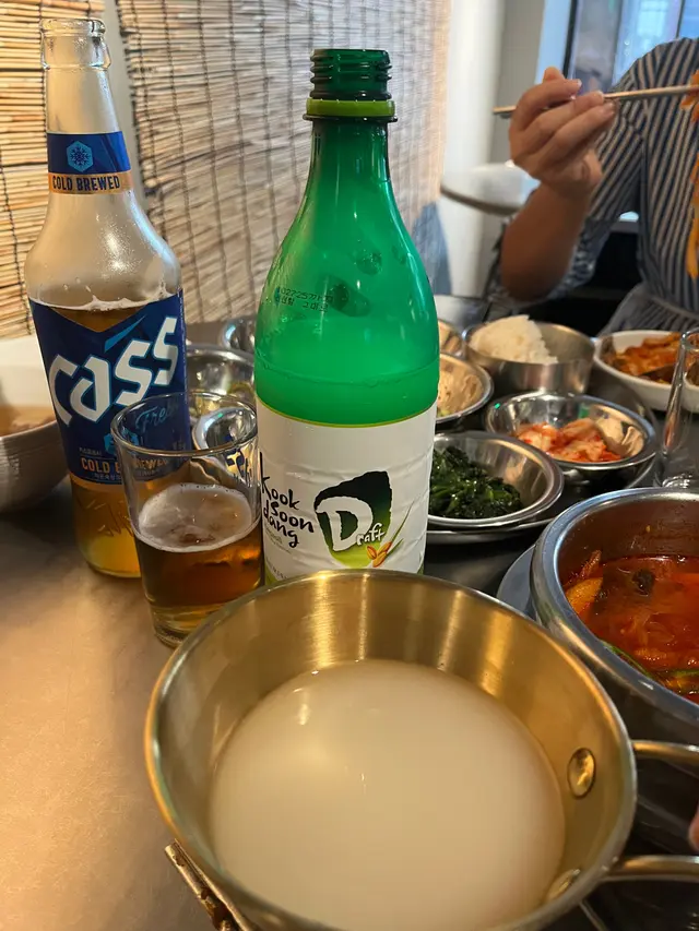 知道朋友好鍾意食韓國嘢,所以今日就帶佢嚟試吓餐牌嘅價錢唔算貴喎,平均$80-$120就可以叫到一個餐, 仲有韓國經典小碟伴菜我哋每人叫咗一款餐,然後一齊share :正餐未到,店員就立刻端上一碗豆腐湯俾我哋飲咗先,雖然得一碗話兩份分,但係其實都好足夠,因為我地要留肚食正餐😆1)烤牛肋骨 $128一上枱係有好多盤小碟,仲有一碗飯,有個主菜烤牛肋骨。小碟菜有韓國泡菜、醃酸醋黑木耳、菠菜、蛋卷、醃蘿蔔、醃海帶菜,好豐富。牛肋骨整得好好食,骨肉容易分離,有筋位,但係容易咬斷,容易食 。烤牛肋骨個調味做得好好,很好配飯。2) 泡菜鍋 $85泡菜鍋一上枱新鮮滾熱辣,唔太辣,入面仲有白滑豆腐粒,有泡菜,有切冬菇片,淡淡都係有材料,好實在,好好味好開胃的一個泡菜湯 。同樣,係跟咗一個飯,同埋有幾款韓國小碟。兩個女仔食,一人一個餐,然後一齊分享,有湯有飯,非常足夠了。另外都好想飲少少韓國好出名嘅米酒,店員推介呢一隻,飲落真係好好飲,有氣嘅米酒,唔會話濃度好高,易入口。Cass啤酒係一隻韓國產地出的啤酒,飲嘅時候同外國啤酒味道冇乜分別,淡口微苦易入口,用嚟餸烤牛肋骨啱晒!店員服務殷勤,唔知係咪因為星期日公眾假期關係,唔係好夠服務員,樓面只得一位服務員,要照顧上每檯食客都真係唔容易呀⚠️*享用酒精飲品必須年滿十八歲*…查看更多