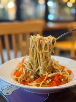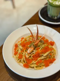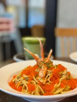 今日同事last day, 她比我揀幾間食店, 我見相片同食評好似依間吸引d, 於是揀左依度, 因為我早來, 所以都有位, 我亦揀左近玻璃窗的四方枱😆以自助形式拿餐具, 調味料同水, 餐牌也是出面拿, 望下餐牌先, 款式唔係真係好多款, 不過款款d相影得好靚, 好似大部分都想試😅, 望的隔離枱食緊咸豬手🐽亦見餐牌話要等半個鐘左右, 於是先出去收銀比$先order一個, 之後等同事來再一起挑選, 之後選左一個比較吸引我多d同最想試的款式, 蟹肉蟹膏煮意粉, 同事要dirty coffee 🥤我就試下熱的玫瑰🌹咖啡☕, 傾左一陣計, 飲品先到, 兩杯賣相都好靚🤩, 我杯玫瑰咖啡有好靚的拉花, 上面鋪左d碎玫瑰花🌹, 店員一送上來, 我好有驚喜🫶望到都超級開心😍, 隔一陣送上意粉,上面鋪滿橙色蟹籽🦀再有一只只蟹拑🦀插係意粉面, 真係齋睇都已經比賣相吸引左😄👍之後撈均來食, 每食一口意粉, 口入面都食到充滿好香濃的蟹味🦀十分有驚喜, 如果再來, 我都一定再order多次, 之後望到隔離枱有個牛油果沙律🥗, 又係比賣相吸引左, 出收銀再叫, 隔一陣再送來, 入面有牛油果沙律菜加煙三文魚撈黑醋👍🤩食落味道唔錯, 但依個份量相對較少🥰意粉我個人就覺得OK😅再隔一回送上主角咸豬手🐽, 真係慢煮, 煮出來外層好均勻, 賣相又係超級靚, 而且超級大只👍, 依個百多元就真係好抵, 外面都難d可以食到, 味道唔錯, 我也不喜歡太咸的食物, 但佢的咸度我可以接受, 而且肉質都有咬口同有肉味, 唔會食到好勁雪藏味, 不過傾下傾下最可惜過左last order時間, 未能order青醬意粉拿走😆有点兒失望, 我真係估唔到屯門區居然會有敢高質的西餐廳, 價錢算唔算高, 真係好個人😂我覺得都可以接受, 而且都物超所值💯不過如果店員可以主動向客人問下, 有無野需要加, 我哋last order, 我諗真啲會更加貼心😍有機會我一定再來, 支持小店😀…Read More