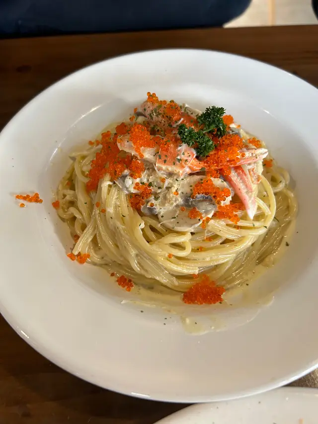 屯門好多cafe都bookmark咗但距離真係頗遠所以都冇去食🥲前排要係附近返工所以就去咗食啦😆🔸北海道帆立貝明太子意粉 $100視覺上已經見到係滿滿嘅明太子真係啖啖明太子🤩每條意粉都掛上明太子😻而帆立貝係刺身個款,都好好味👅而配料仲有菇但再多啲菇會更好😆一個人食哂都唔會覺得好膩~🔸大蝦寛蝦麵 $80有4隻大蝦,有輕微炸過所以外皮脆脆地再加上有胡椒調味🍤好食!!汁係蝦油加忌廉,因為有蝦油所以都好香蝦味😚而麵都好掛汁但真係幾膩,自己一個食哂都幾滯下😳🔸Latte $34咖啡唔係好苦都係正正常常😉…查看更多