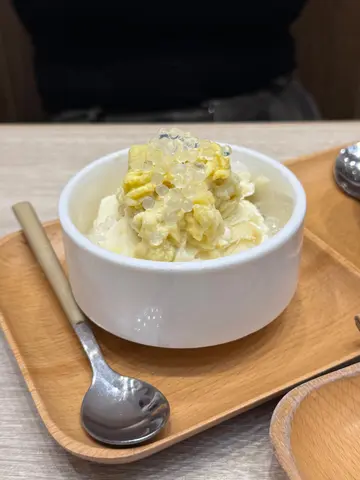 新鮮芒果好甜美,中間有芒果奶昔吉士,口感有啲似雪糕。最底下係口感嫩滑的雙皮奶,充滿奶香
