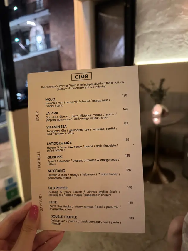 C108 (中環) 網址: https://s.openrice.com/QrbS0E3KD00 地址: 香港中環奧卑利街15號地舖 電話: +852 57228804